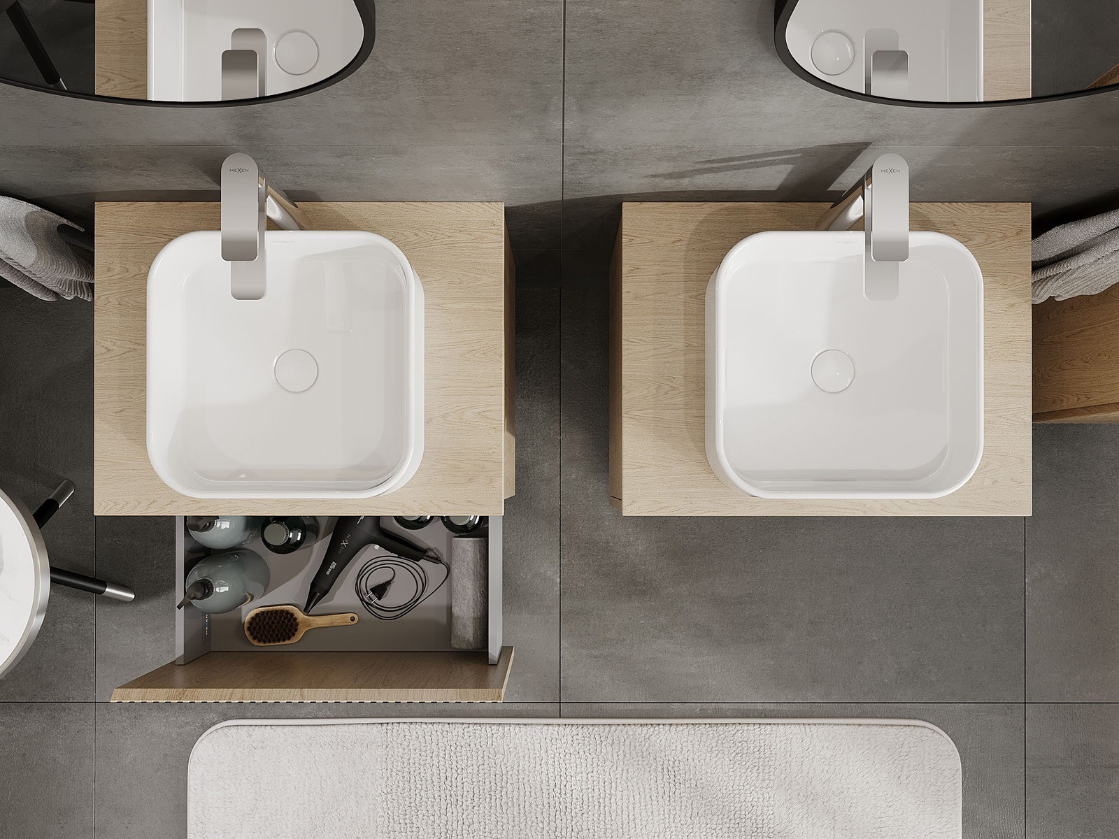 Mexen Rivel шкаф за баня под мивка 60 см с плот, 1 чекмедже, набраздено, дъб - 91A20-06047-1-BFC81