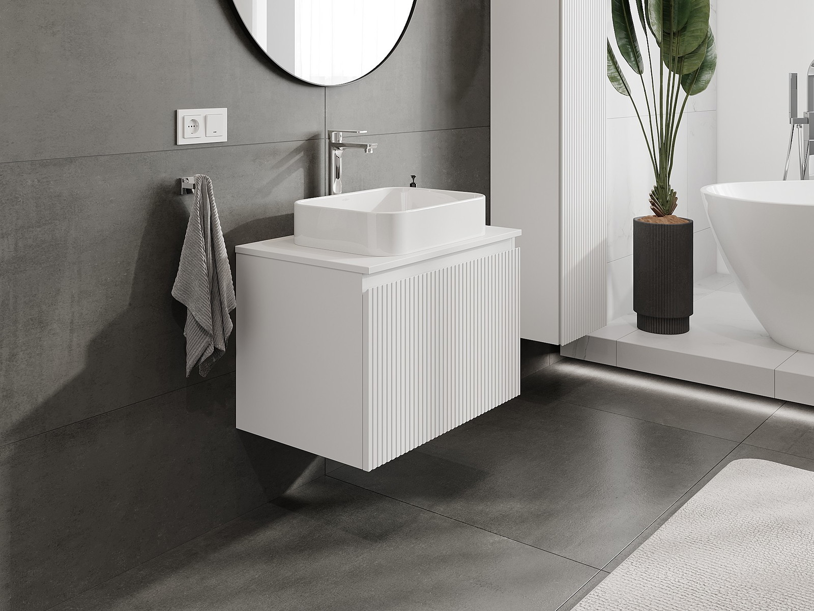 Корпусът на шкафа се доставя напълно сглобен, което означава максимално удобство и спестяване на време. Не е нужно да губите часове за сглобяване на мебела – просто го монтирайте на избраното място в банята. Това е идеалното решение за хора, които ценят бързия монтаж и незабавния ефект.