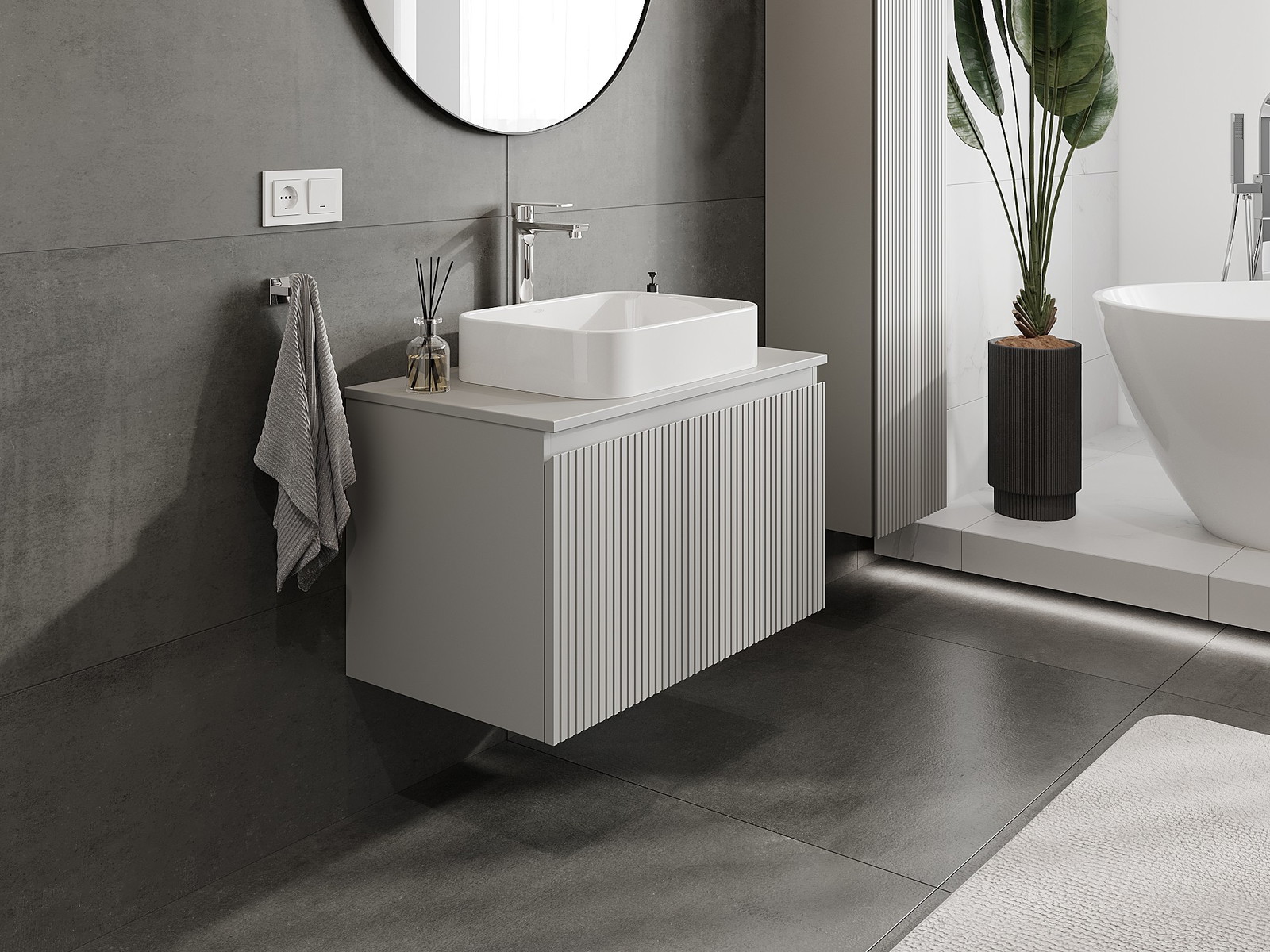 Корпусът на шкафа се доставя напълно сглобен, което означава максимално удобство и спестяване на време. Не е нужно да губите часове за сглобяване на мебела – просто го монтирайте на избраното място в банята. Това е идеалното решение за хора, които ценят бързия монтаж и незабавния ефект.