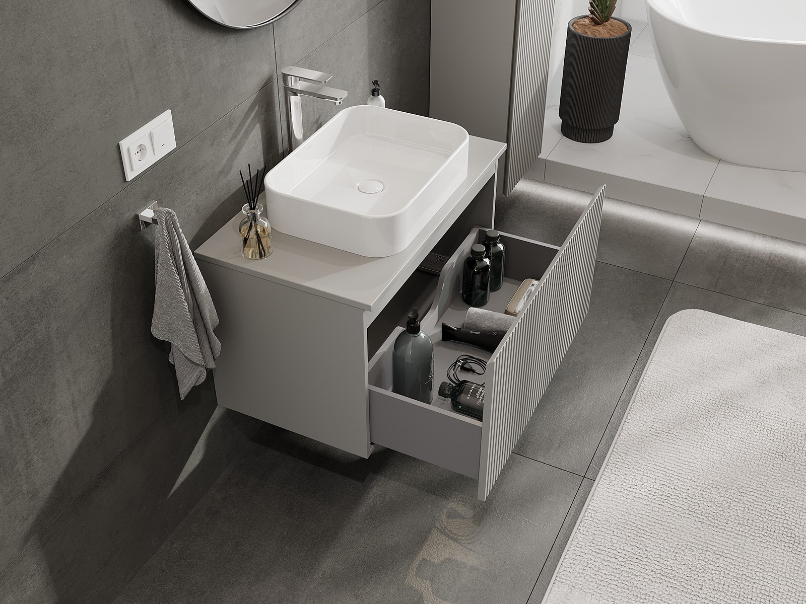 Нашите модулни мебели за баня могат да се комбинират в различни цветови конфигурации, което позволява пълна персонализация. Може да се избере както външният вид, така и функциите на отделните елементи, което позволява съчетаване на мебелите със собствените стилови и функционални предпочитания.