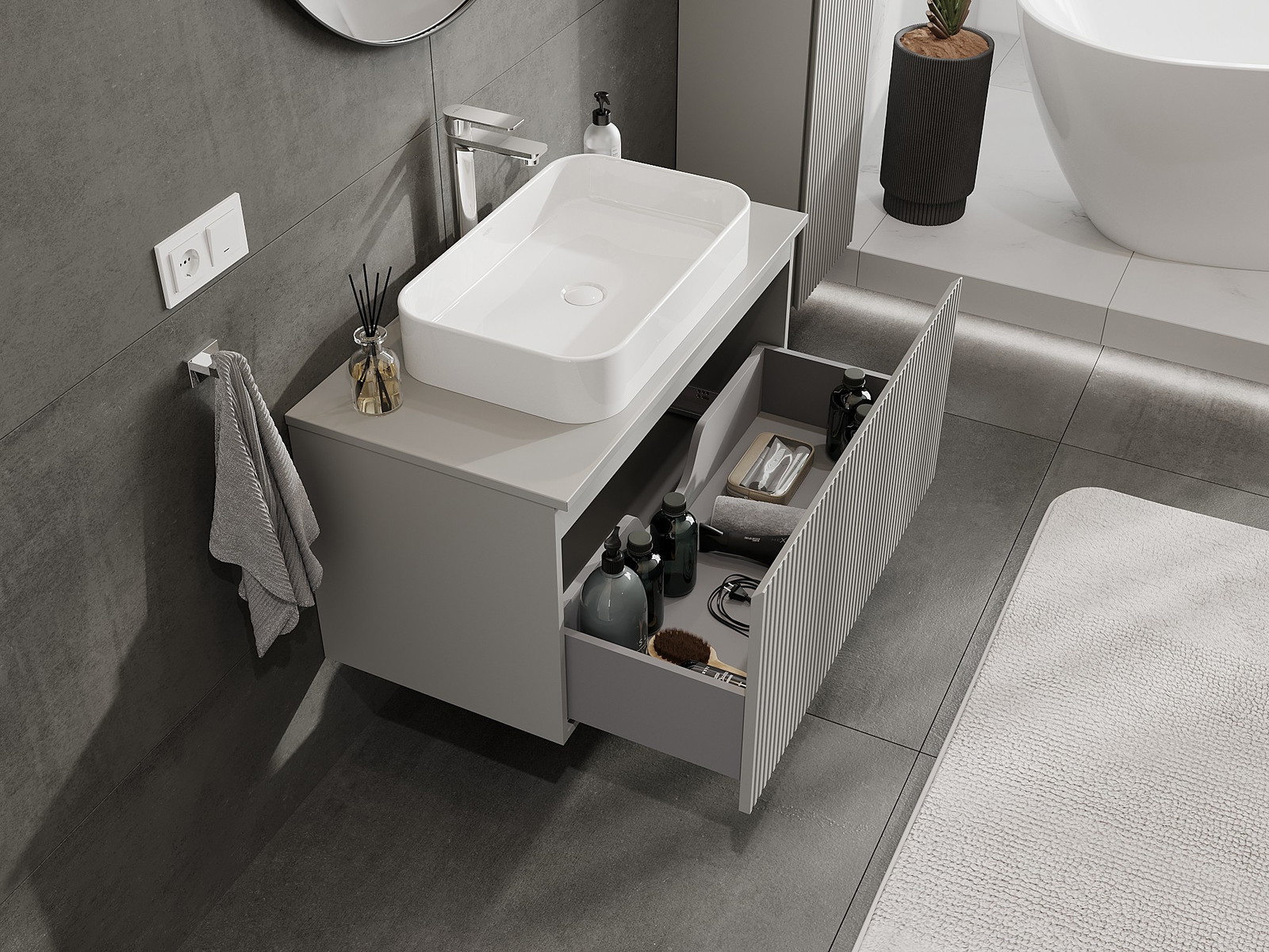 Нашите модулни мебели за баня могат да се комбинират в различни цветови конфигурации, което позволява пълна персонализация. Може да се избере както външният вид, така и функциите на отделните елементи, което позволява съчетаване на мебелите със собствените стилови и функционални предпочитания.