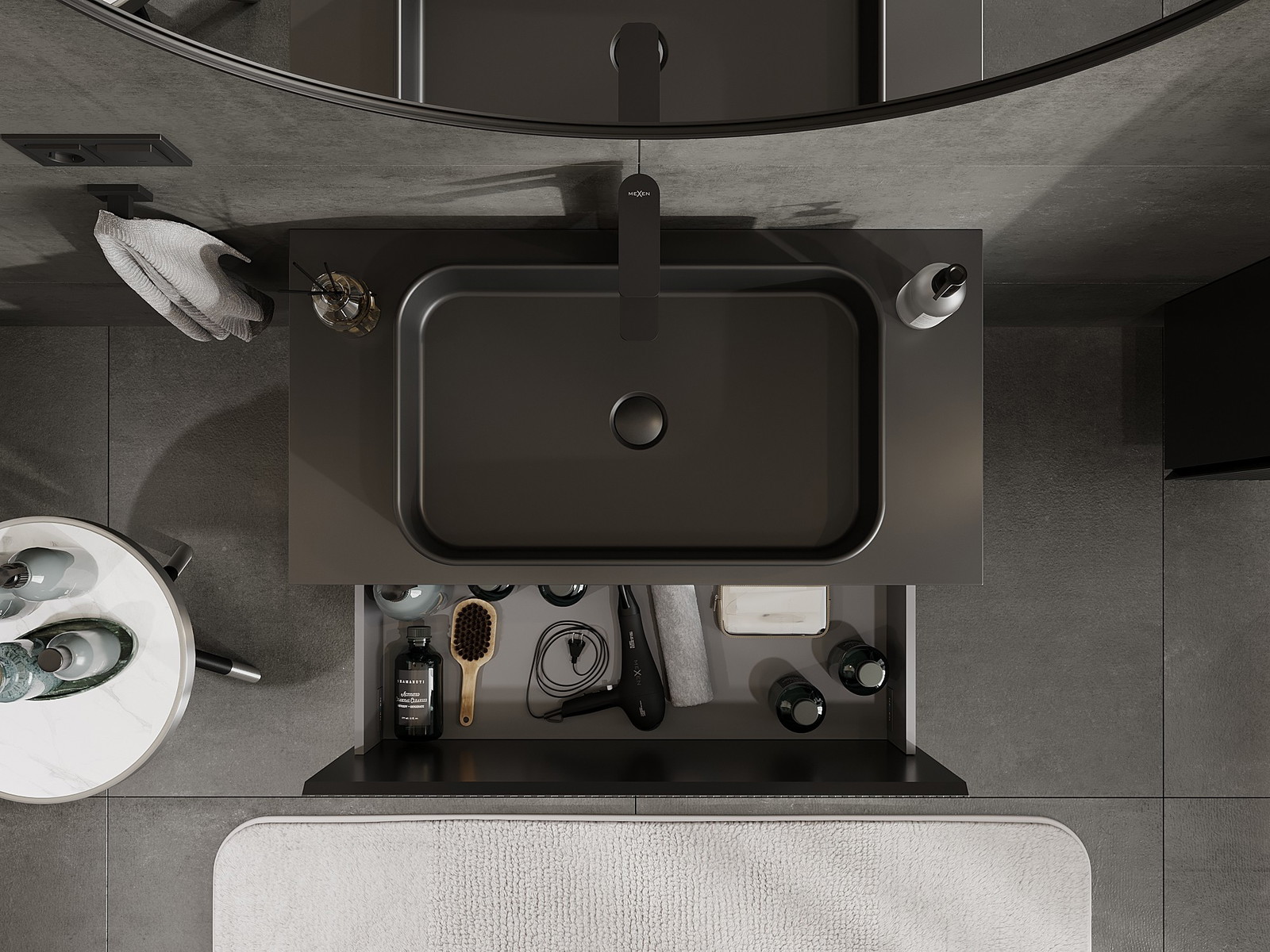 Изрезът в чекмеджето е проектиран по такъв начин, че да побере сифона, който е необходим в мивковите инсталации. Благодарение на това мебелът може да бъде монтиран напълно функционално, без да се налага отказване от пространството в чекмеджето заради инсталацията.