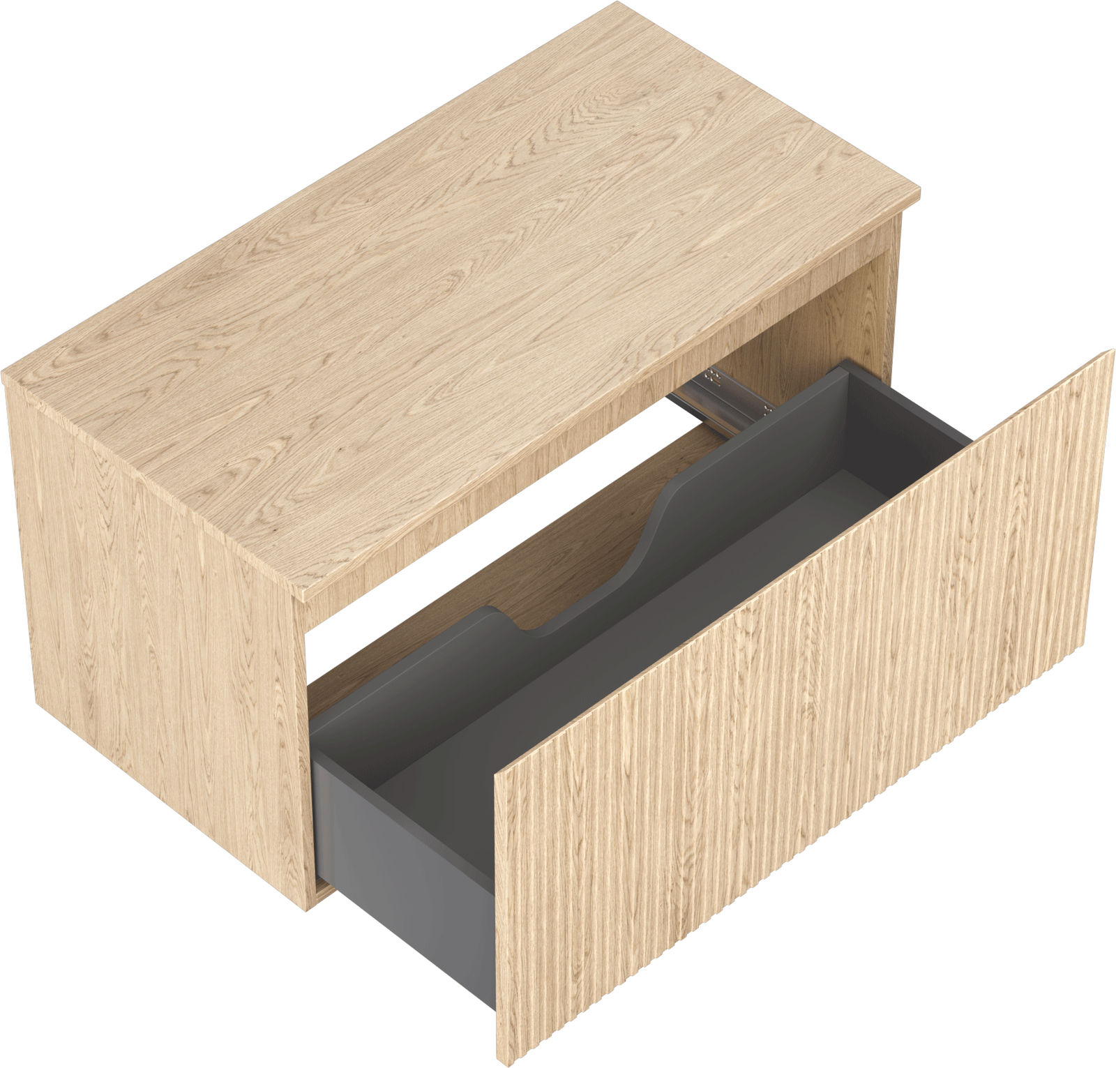 Изрезът в чекмеджето е проектиран по такъв начин, че да побере сифона, който е необходим в мивковите инсталации. Благодарение на това мебелът може да бъде монтиран напълно функционално, без да се налага отказване от пространството в чекмеджето заради инсталацията.