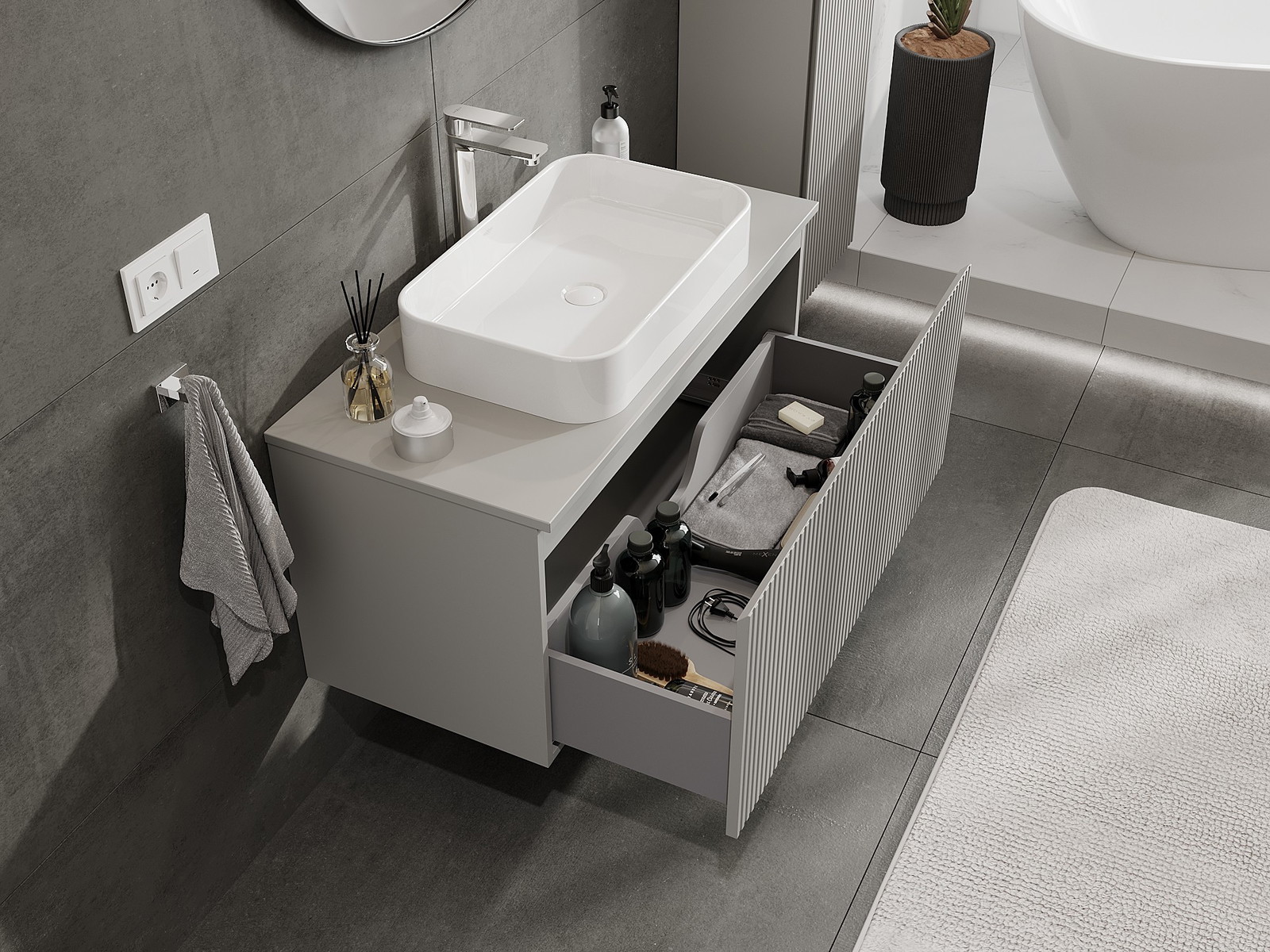 Нашите модулни мебели за баня могат да се комбинират в различни цветови конфигурации, което позволява пълна персонализация. Може да се избере както външният вид, така и функциите на отделните елементи, което позволява съчетаване на мебелите със собствените стилови и функционални предпочитания.