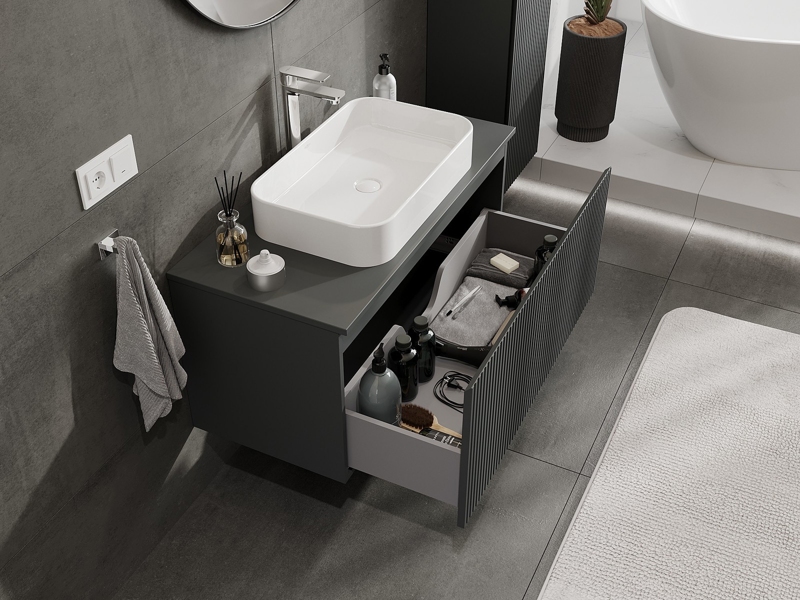 Корпусът на шкафа се доставя напълно сглобен, което означава максимално удобство и спестяване на време. Не е нужно да губите часове за сглобяване на мебела – просто го монтирайте на избраното място в банята. Това е идеалното решение за хора, които ценят бързия монтаж и незабавния ефект.
