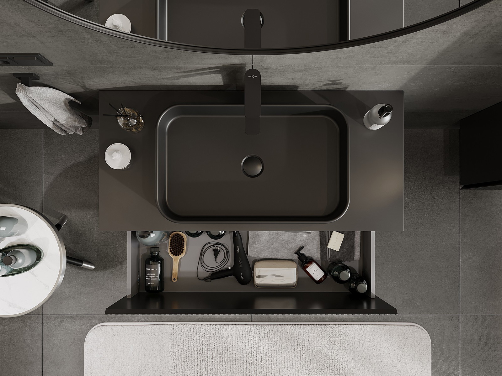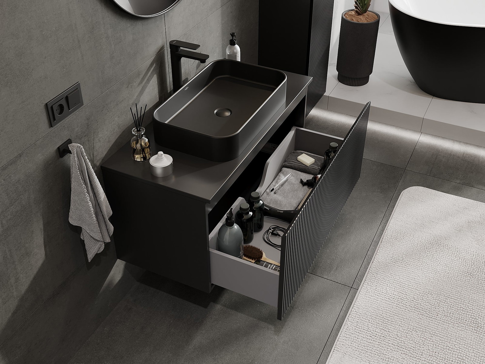 Изрезът в чекмеджето е проектиран по такъв начин, че да побере сифона, който е необходим в мивковите инсталации. Благодарение на това мебелът може да бъде монтиран напълно функционално, без да се налага отказване от пространството в чекмеджето заради инсталацията.
