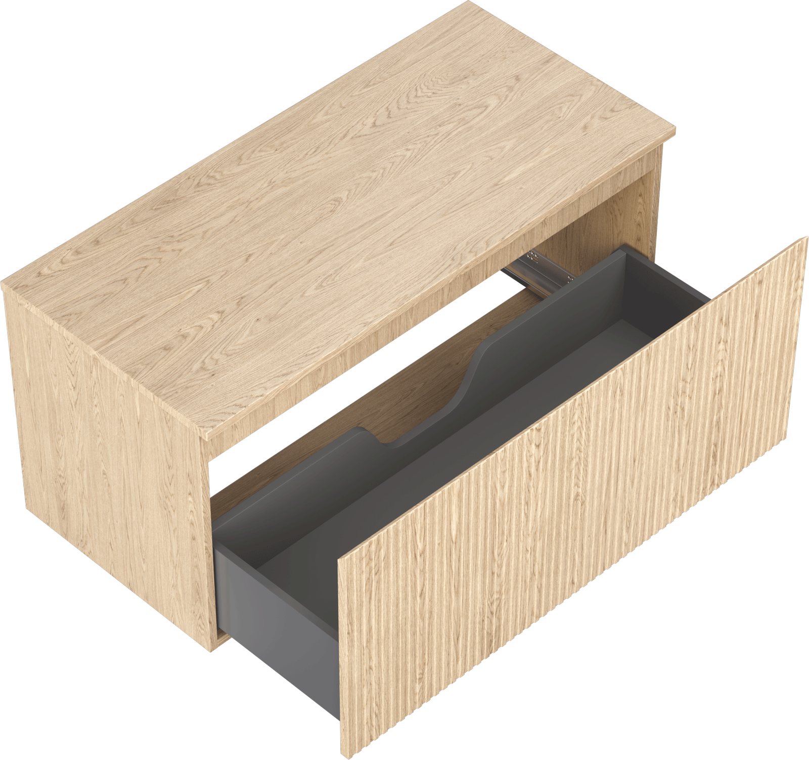 Изрезът в чекмеджето е проектиран по такъв начин, че да побере сифона, който е необходим в мивковите инсталации. Благодарение на това мебелът може да бъде монтиран напълно функционално, без да се налага отказване от пространството в чекмеджето заради инсталацията.