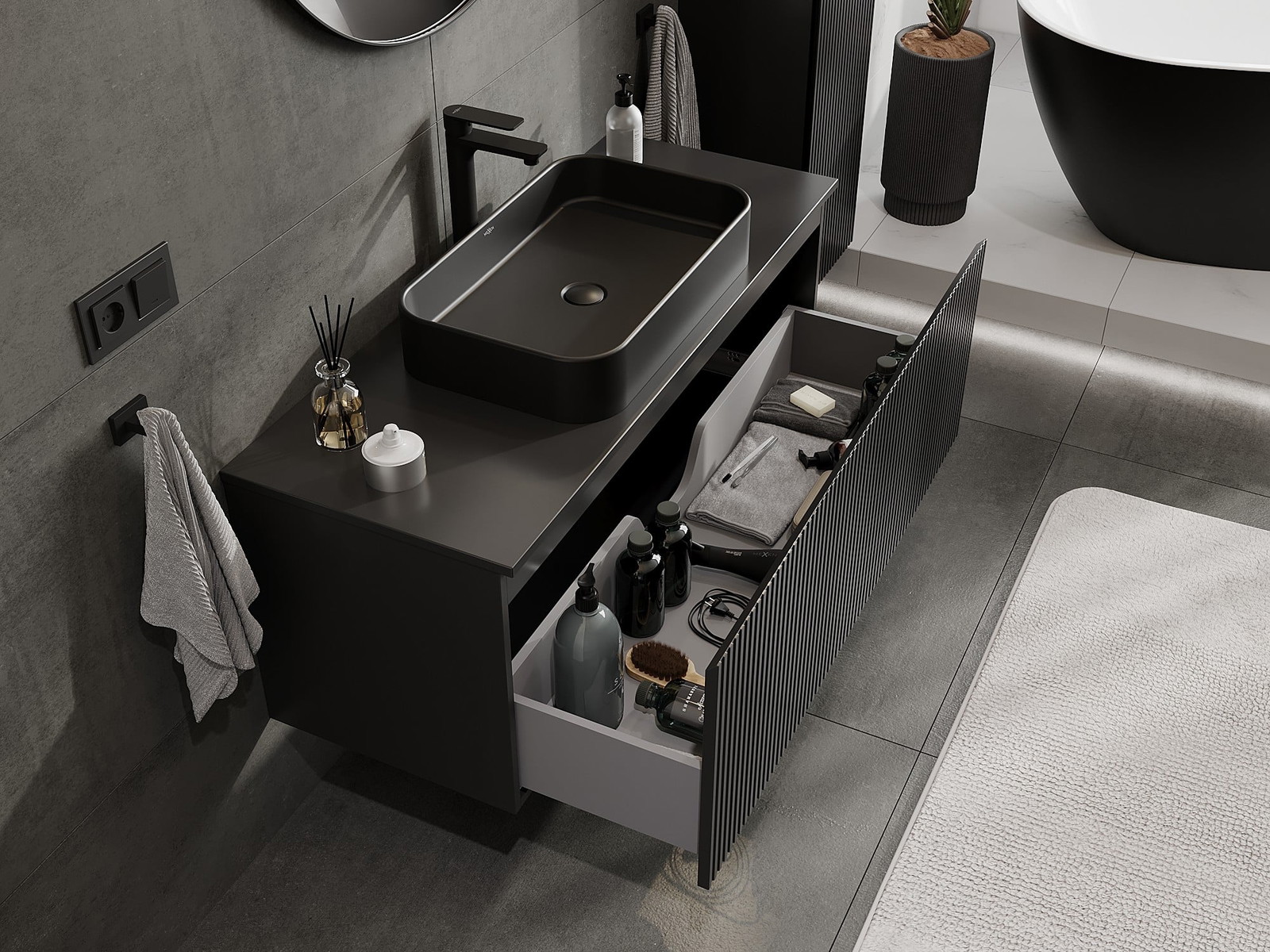 Нашите модулни мебели за баня могат да се комбинират в различни цветови конфигурации, което позволява пълна персонализация. Може да се избере както външният вид, така и функциите на отделните елементи, което позволява съчетаване на мебелите със собствените стилови и функционални предпочитания.