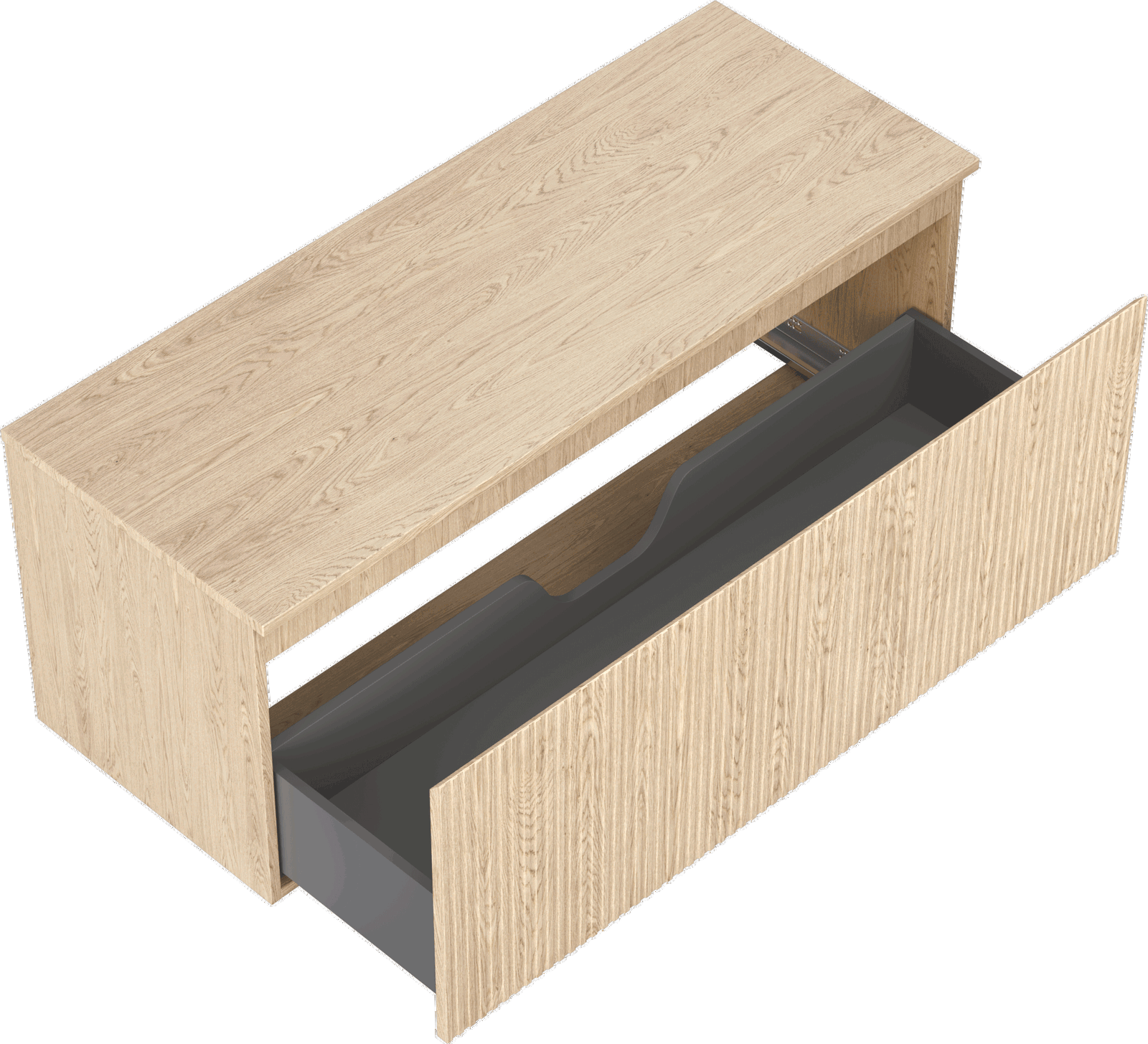 Изрезът в чекмеджето е проектиран по такъв начин, че да побере сифона, който е необходим в мивковите инсталации. Благодарение на това мебелът може да бъде монтиран напълно функционално, без да се налага отказване от пространството в чекмеджето заради инсталацията.