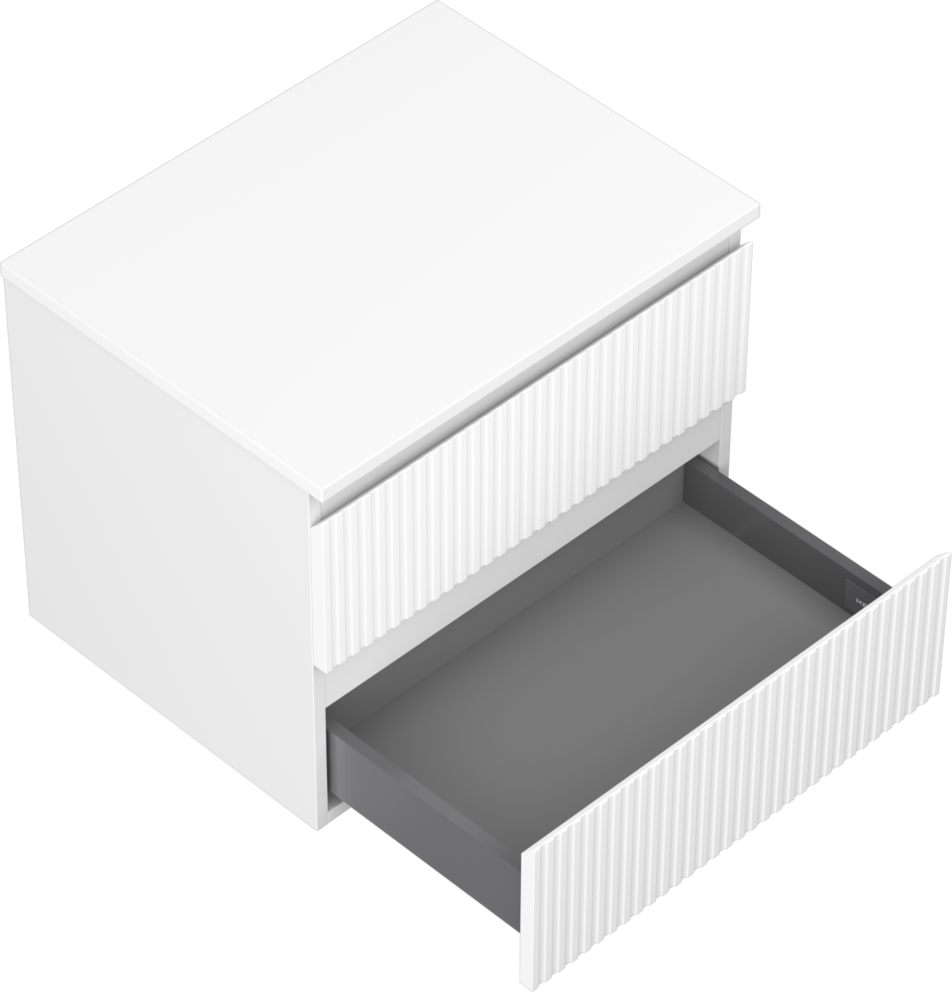 Изрезът в чекмеджето е проектиран по такъв начин, че да побере сифона, който е необходим в мивковите инсталации. Благодарение на това мебелът може да бъде монтиран напълно функционално, без да се налага отказване от пространството в чекмеджето заради инсталацията.