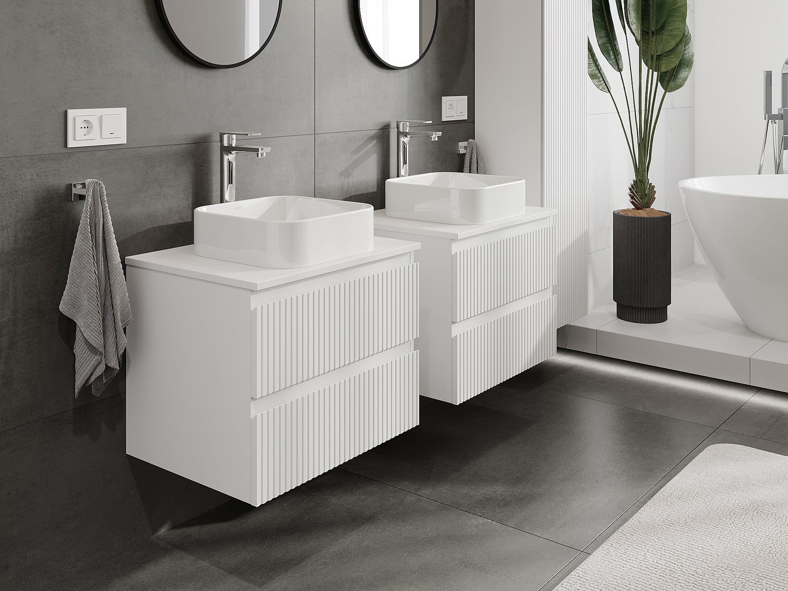 Нашите модулни мебели за баня могат да се комбинират в различни цветови конфигурации, което позволява пълна персонализация. Може да се избере както външният вид, така и функциите на отделните елементи, което позволява съчетаване на мебелите със собствените стилови и функционални предпочитания.