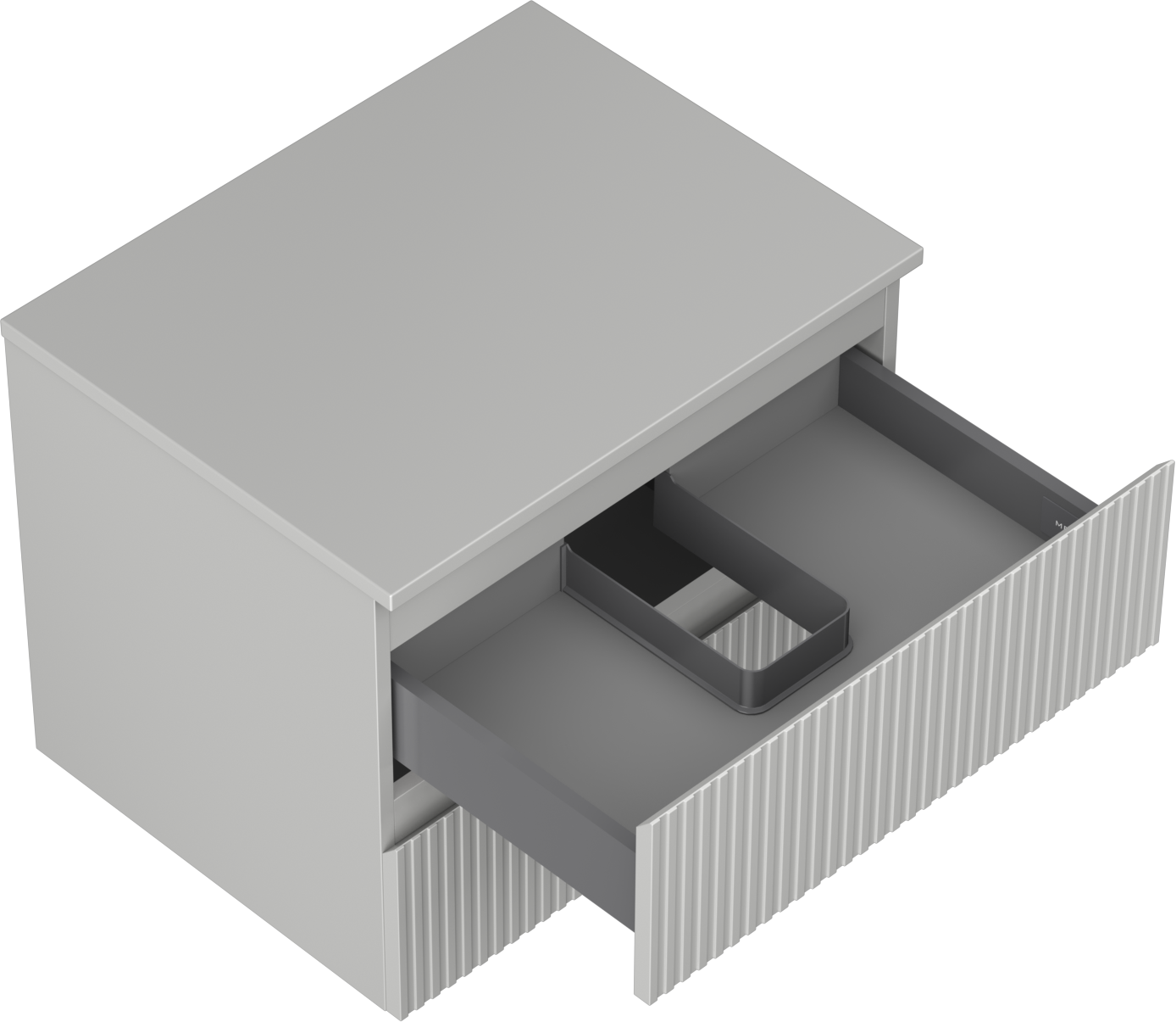 Изрезът в чекмеджето е проектиран по такъв начин, че да побере сифона, който е необходим в мивковите инсталации. Благодарение на това мебелът може да бъде монтиран напълно функционално, без да се налага отказване от пространството в чекмеджето заради инсталацията.