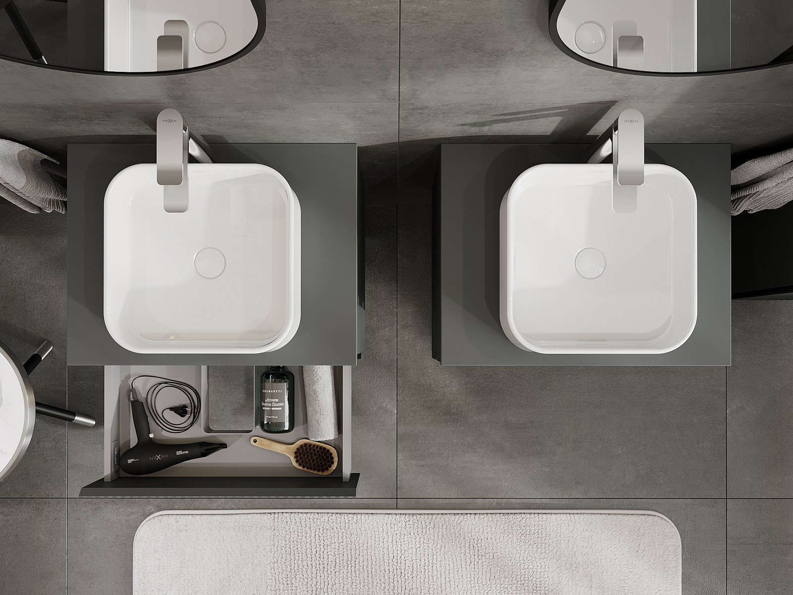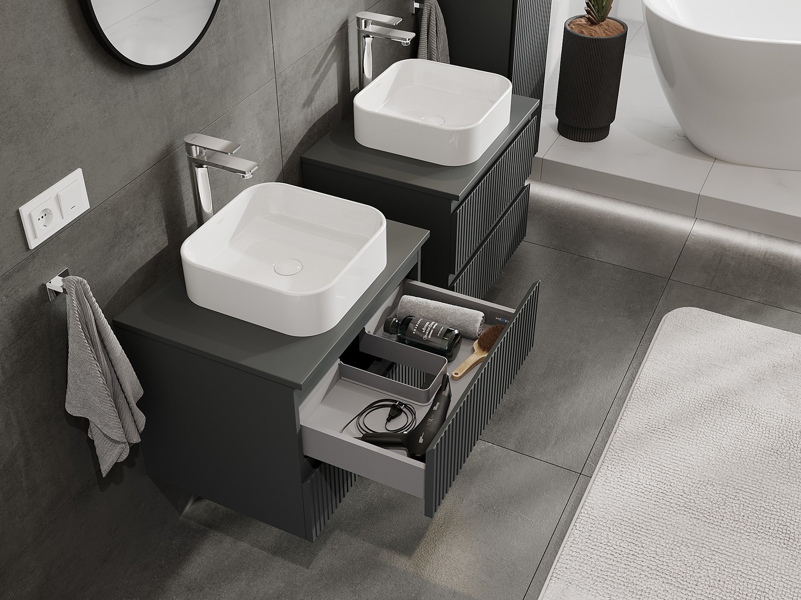 Нашите модулни мебели за баня могат да се комбинират в различни цветови конфигурации, което позволява пълна персонализация. Може да се избере както външният вид, така и функциите на отделните елементи, което позволява съчетаване на мебелите със собствените стилови и функционални предпочитания.