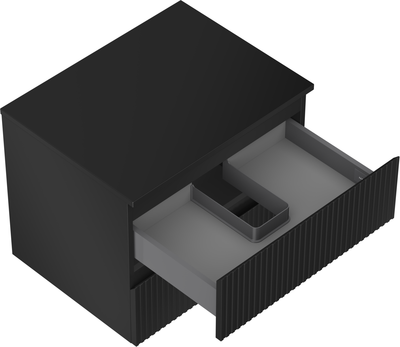 Изрезът в чекмеджето е проектиран по такъв начин, че да побере сифона, който е необходим в мивковите инсталации. Благодарение на това мебелът може да бъде монтиран напълно функционално, без да се налага отказване от пространството в чекмеджето заради инсталацията.