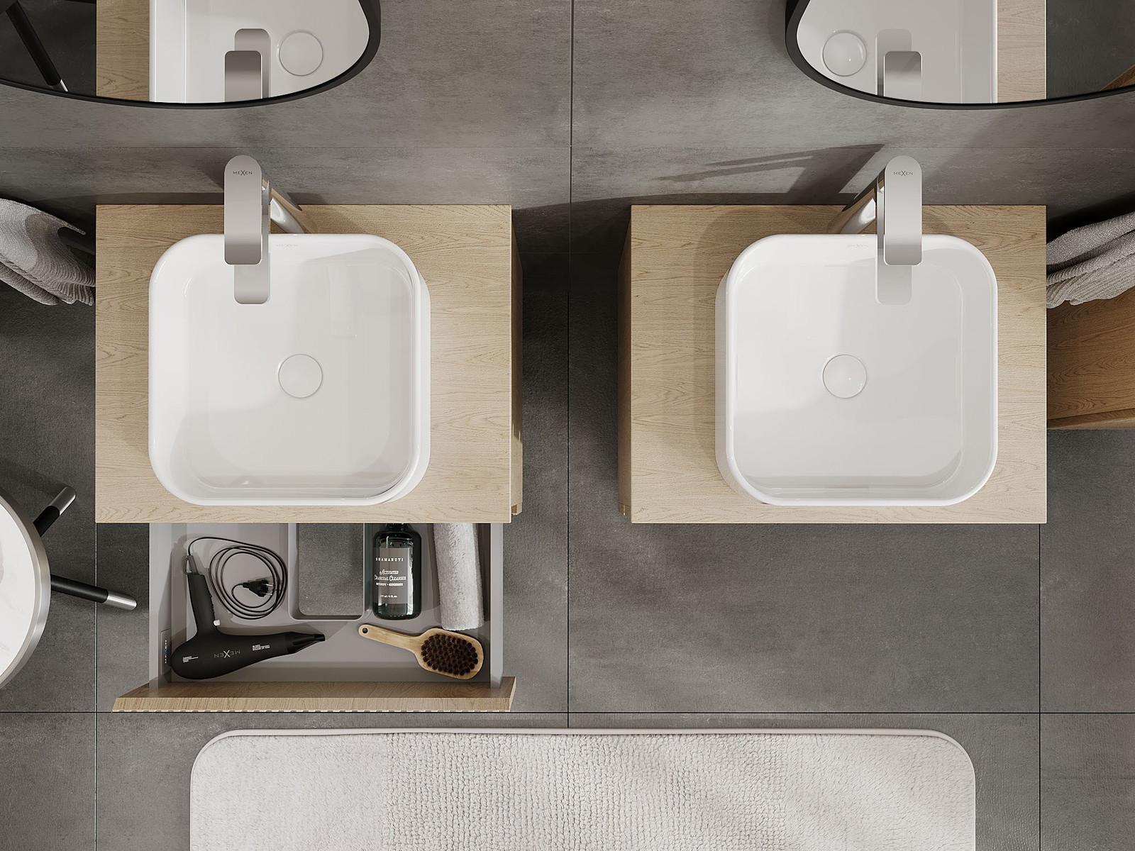 Изрезът в чекмеджето е проектиран по такъв начин, че да побере сифона, който е необходим в мивковите инсталации. Благодарение на това мебелът може да бъде монтиран напълно функционално, без да се налага отказване от пространството в чекмеджето заради инсталацията.