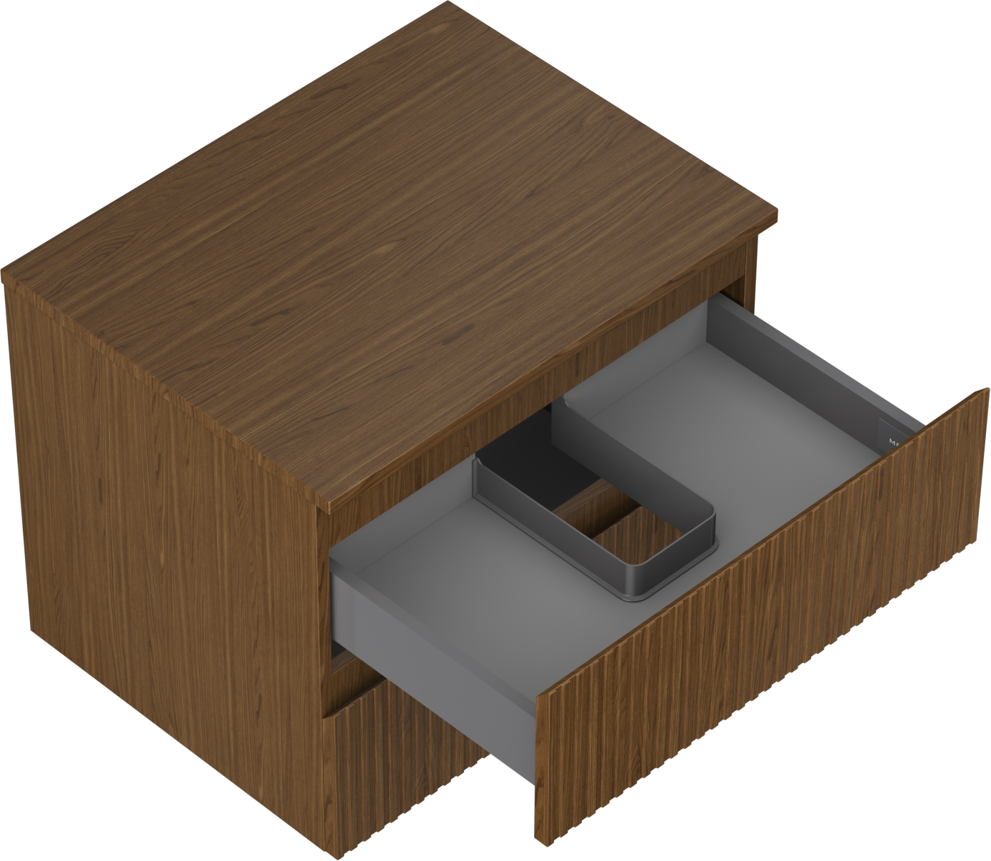 Изрезът в чекмеджето е проектиран по такъв начин, че да побере сифона, който е необходим в мивковите инсталации. Благодарение на това мебелът може да бъде монтиран напълно функционално, без да се налага отказване от пространството в чекмеджето заради инсталацията.