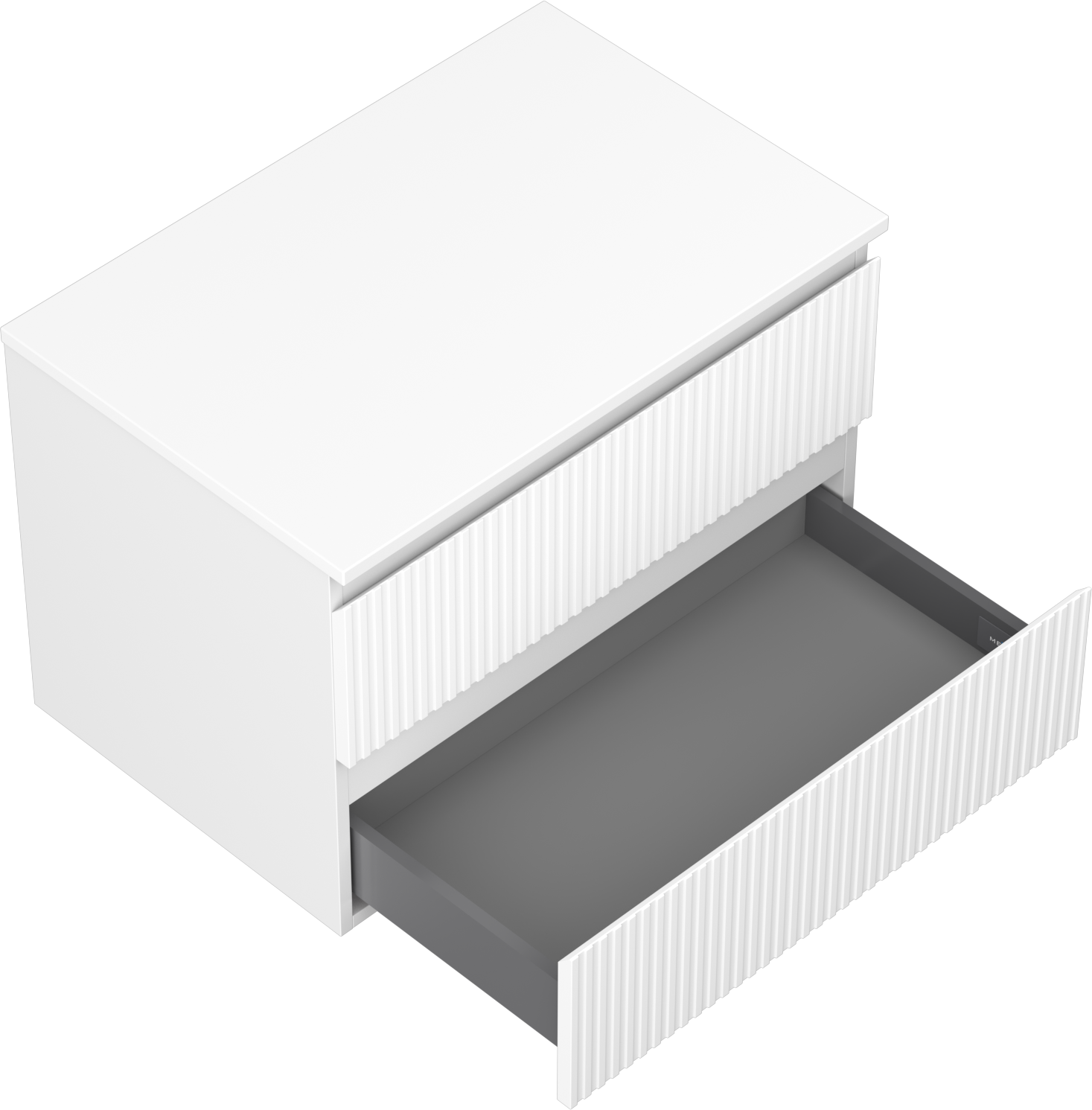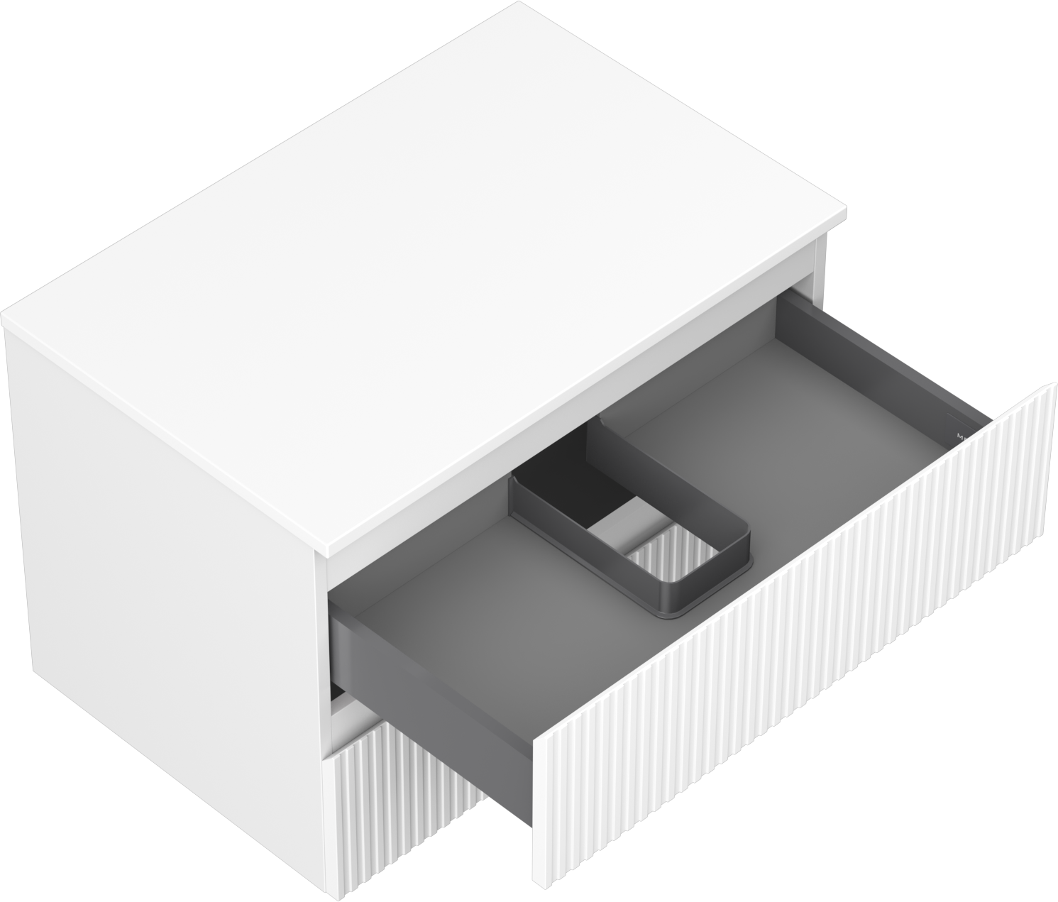 Изрезът в чекмеджето е проектиран по такъв начин, че да побере сифона, който е необходим в мивковите инсталации. Благодарение на това мебелът може да бъде монтиран напълно функционално, без да се налага отказване от пространството в чекмеджето заради инсталацията.