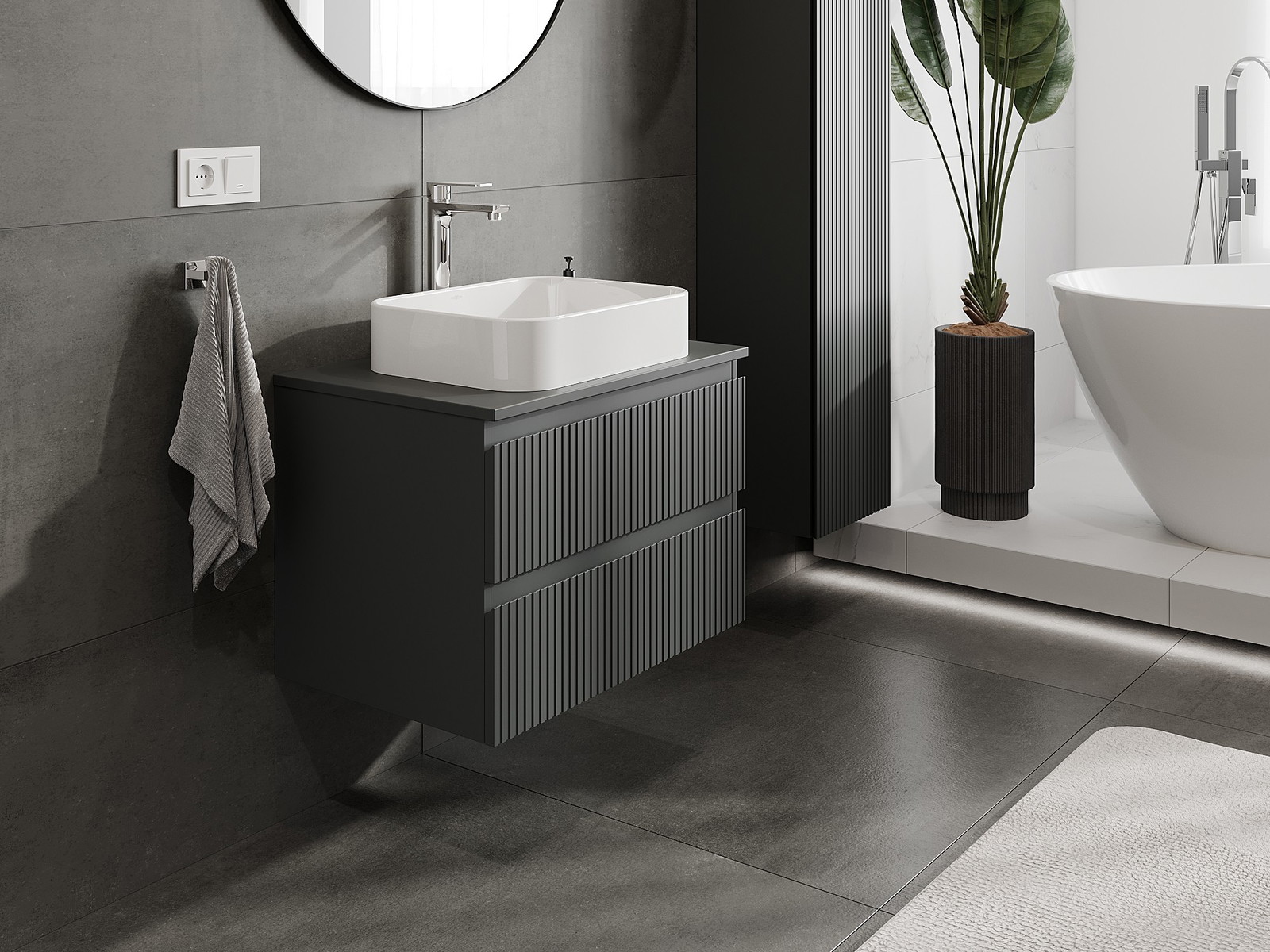 Корпусът на шкафа се доставя напълно сглобен, което означава максимално удобство и спестяване на време. Не е нужно да губите часове за сглобяване на мебела – просто го монтирайте на избраното място в банята. Това е идеалното решение за хора, които ценят бързия монтаж и незабавния ефект.