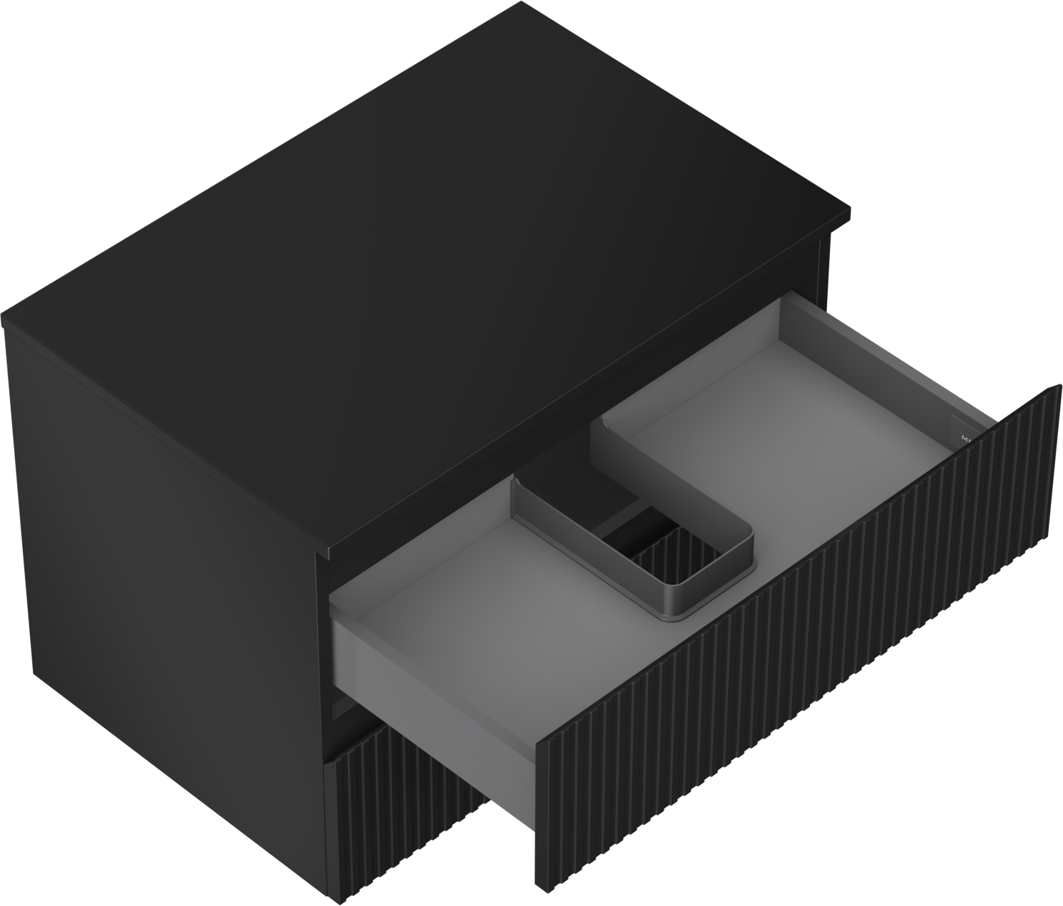Изрезът в чекмеджето е проектиран по такъв начин, че да побере сифона, който е необходим в мивковите инсталации. Благодарение на това мебелът може да бъде монтиран напълно функционално, без да се налага отказване от пространството в чекмеджето заради инсталацията.