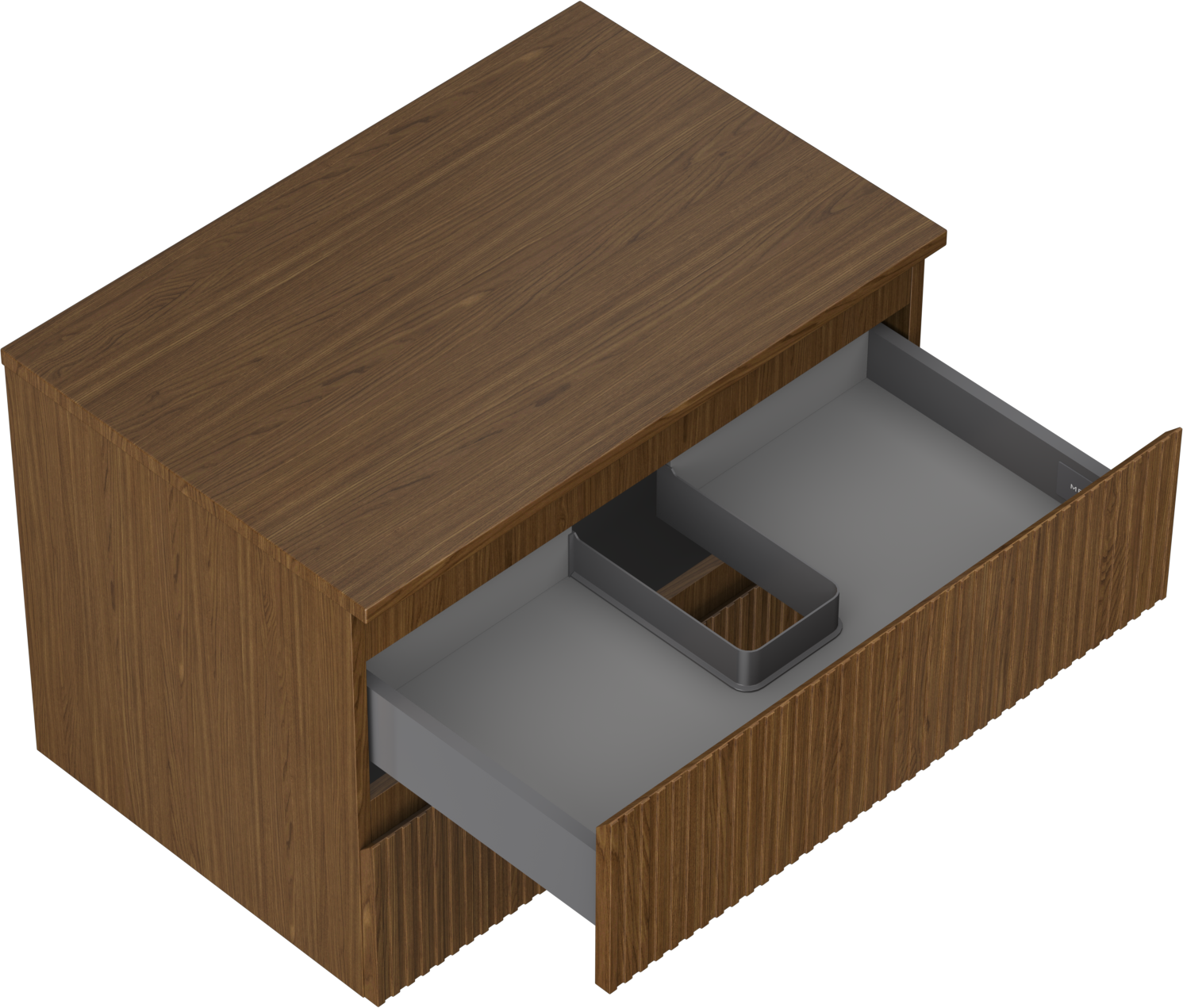 Изрезът в чекмеджето е проектиран по такъв начин, че да побере сифона, който е необходим в мивковите инсталации. Благодарение на това мебелът може да бъде монтиран напълно функционално, без да се налага отказване от пространството в чекмеджето заради инсталацията.