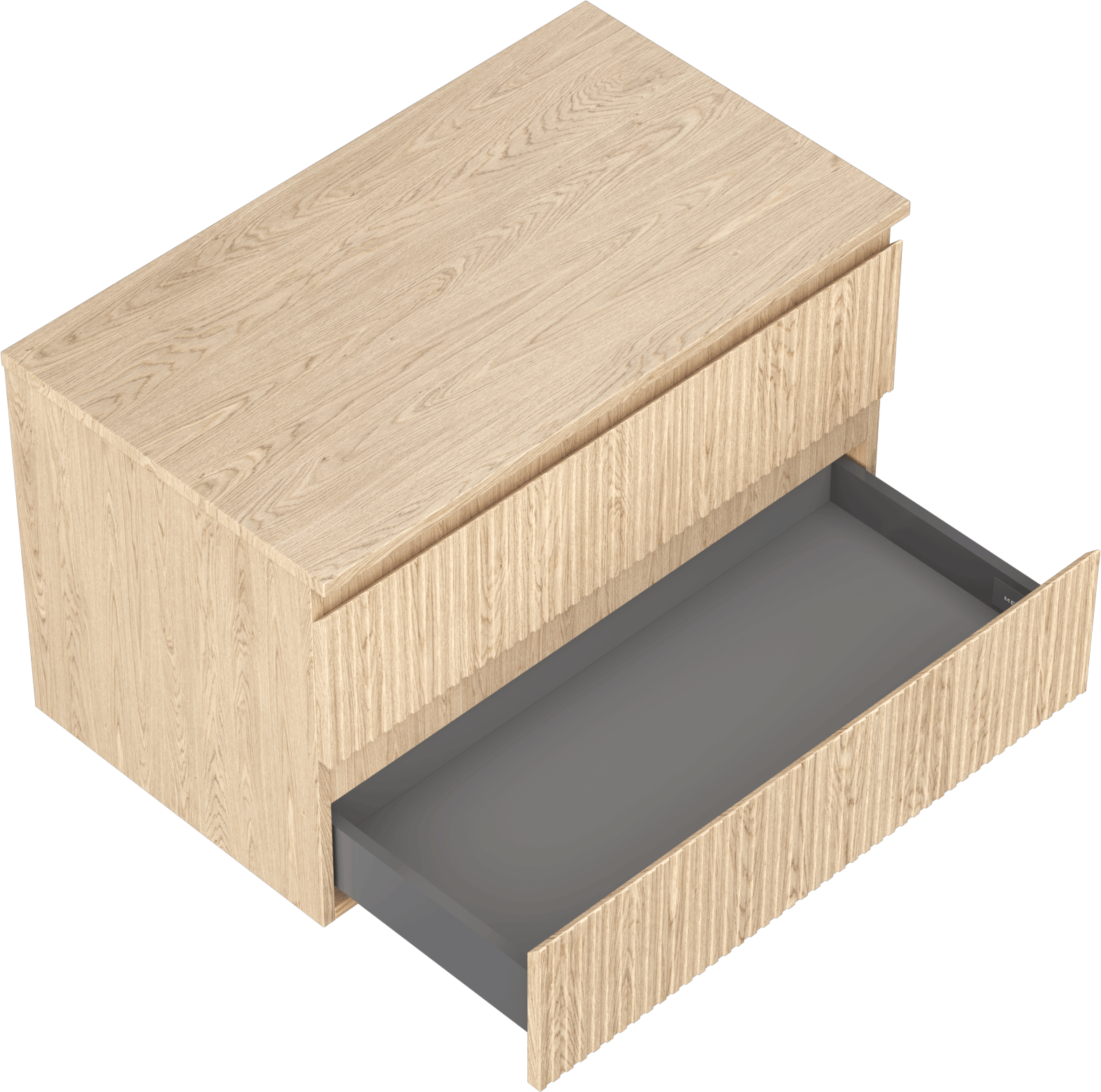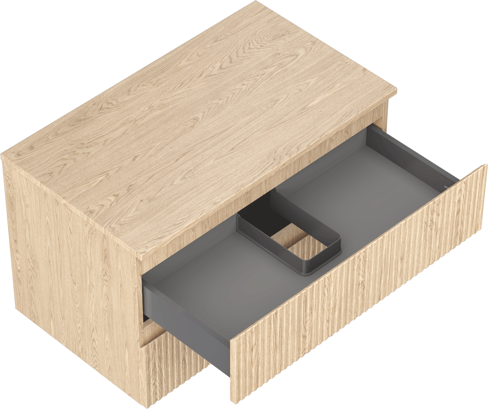 Изрезът в чекмеджето е проектиран по такъв начин, че да побере сифона, който е необходим в мивковите инсталации. Благодарение на това мебелът може да бъде монтиран напълно функционално, без да се налага отказване от пространството в чекмеджето заради инсталацията.