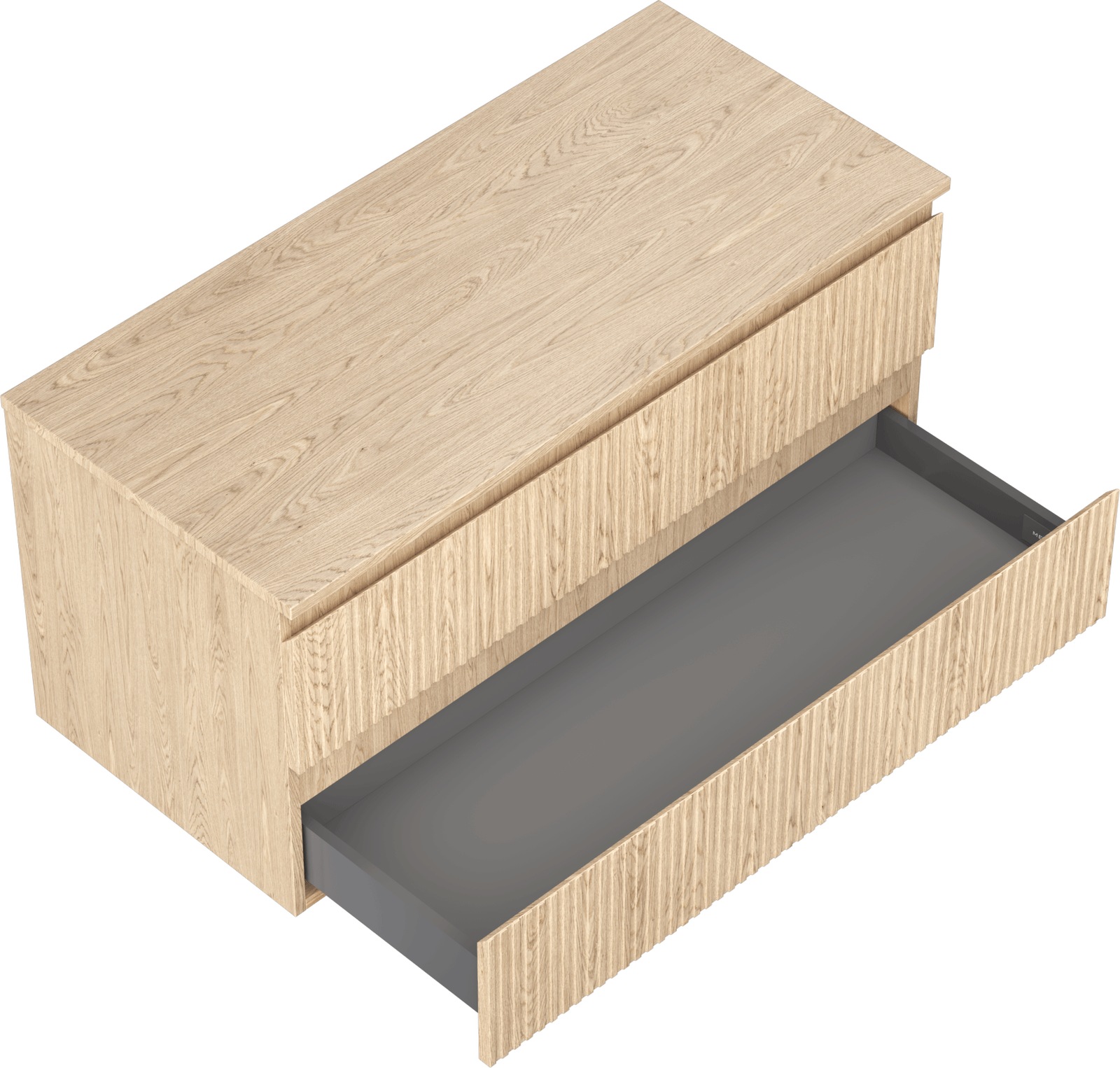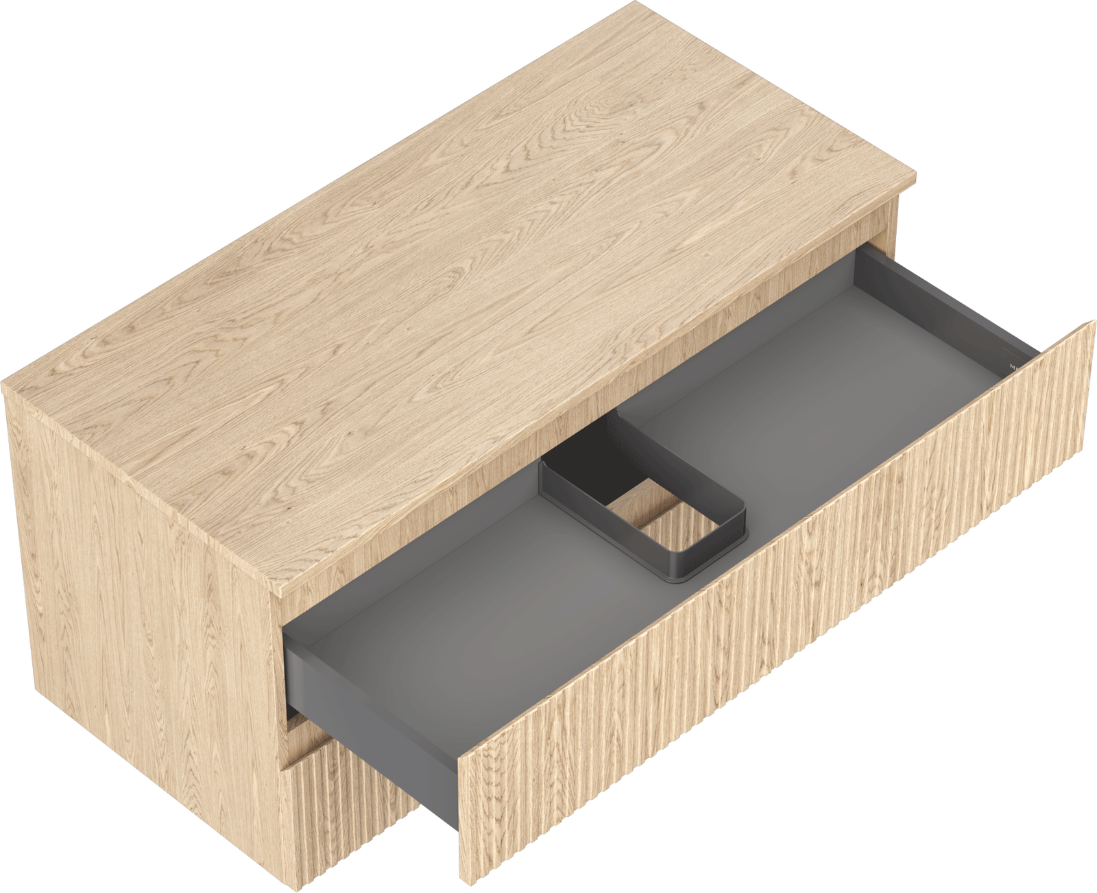 Изрезът в чекмеджето е проектиран по такъв начин, че да побере сифона, който е необходим в мивковите инсталации. Благодарение на това мебелът може да бъде монтиран напълно функционално, без да се налага отказване от пространството в чекмеджето заради инсталацията.