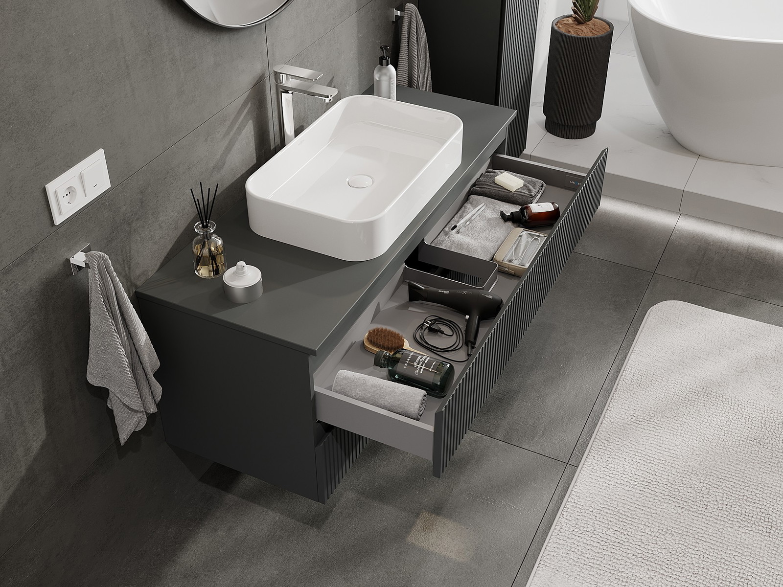 Нашите модулни мебели за баня могат да се комбинират в различни цветови конфигурации, което позволява пълна персонализация. Може да се избере както външният вид, така и функциите на отделните елементи, което позволява съчетаване на мебелите със собствените стилови и функционални предпочитания.