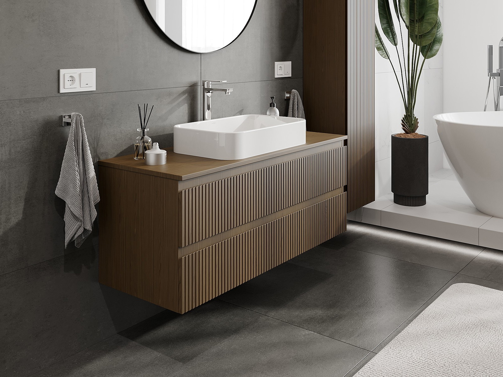 Корпусът на шкафа се доставя напълно сглобен, което означава максимално удобство и спестяване на време. Не е нужно да губите часове за сглобяване на мебела – просто го монтирайте на избраното място в банята. Това е идеалното решение за хора, които ценят бързия монтаж и незабавния ефект.