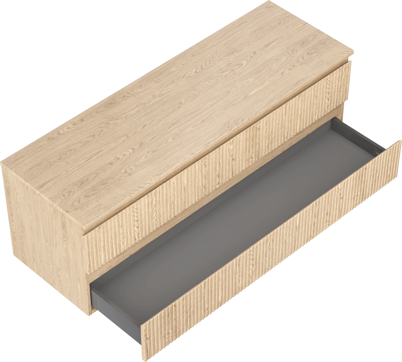 Изрезът в чекмеджето е проектиран по такъв начин, че да побере сифона, който е необходим в мивковите инсталации. Благодарение на това мебелът може да бъде монтиран напълно функционално, без да се налага отказване от пространството в чекмеджето заради инсталацията.