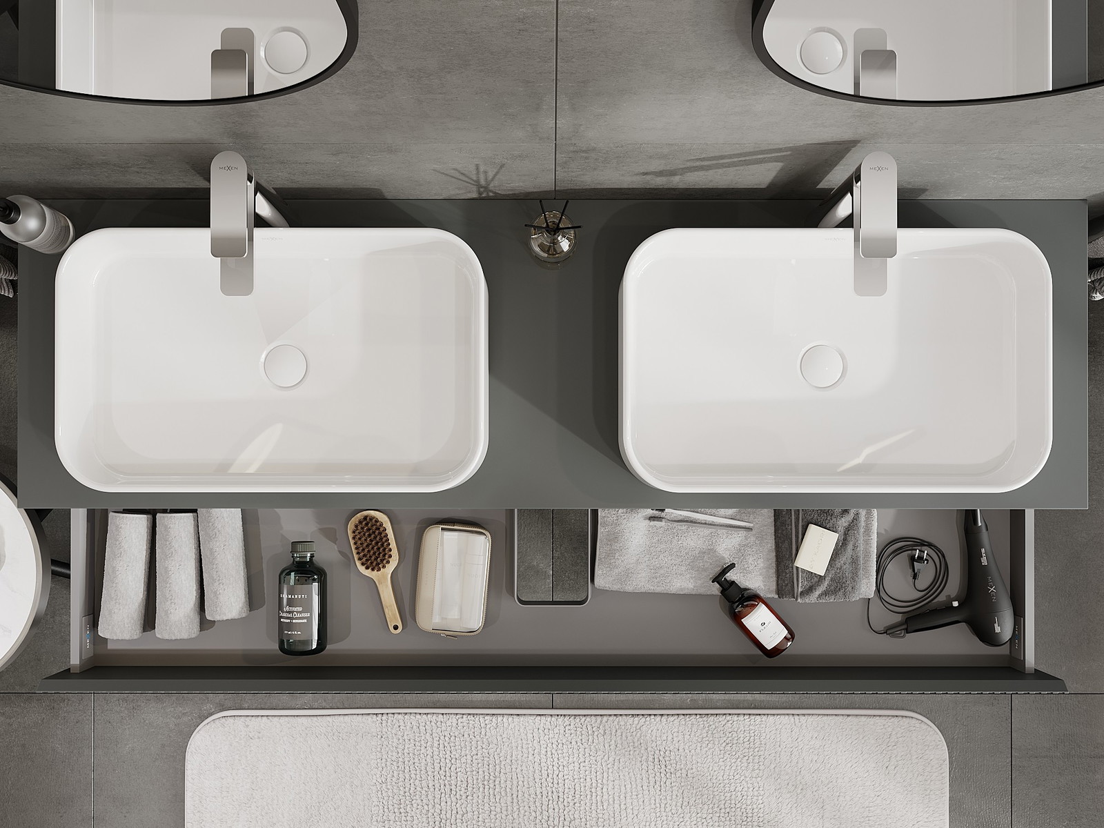Изрезът в чекмеджето е проектиран по такъв начин, че да побере сифона, който е необходим в мивковите инсталации. Благодарение на това мебелът може да бъде монтиран напълно функционално, без да се налага отказване от пространството в чекмеджето заради инсталацията.