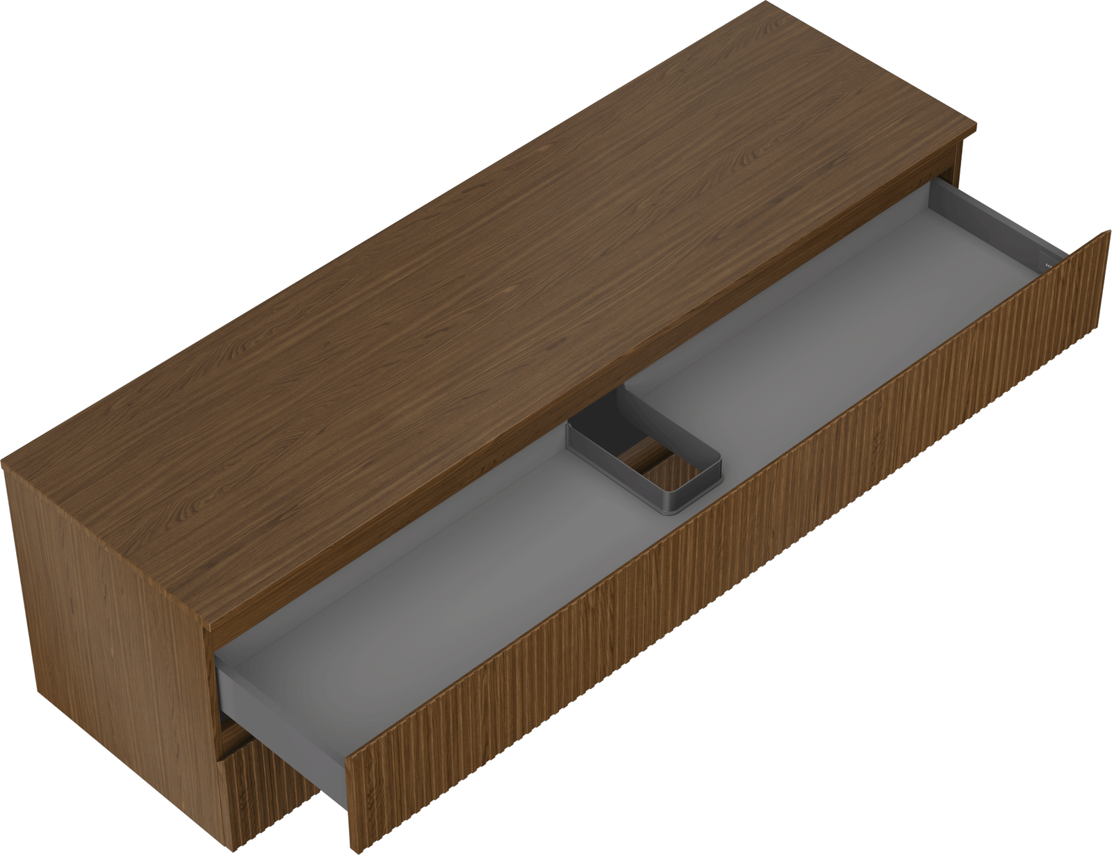 Изрезът в чекмеджето е проектиран по такъв начин, че да побере сифона, който е необходим в мивковите инсталации. Благодарение на това мебелът може да бъде монтиран напълно функционално, без да се налага отказване от пространството в чекмеджето заради инсталацията.