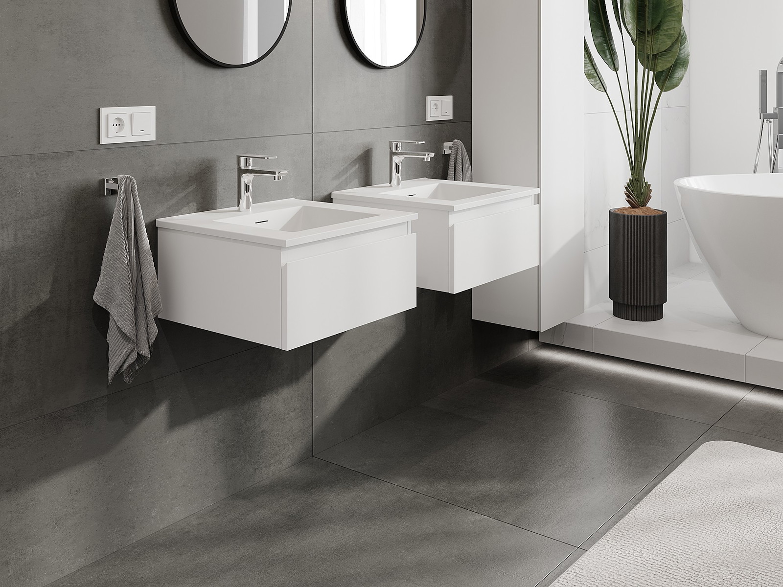 Нашите модулни мебели за баня могат да се комбинират в различни цветови конфигурации, което позволява пълна персонализация. Може да се избере както външният вид, така и функциите на отделните елементи, което позволява съчетаване на мебелите със собствените стилови и функционални предпочитания.
