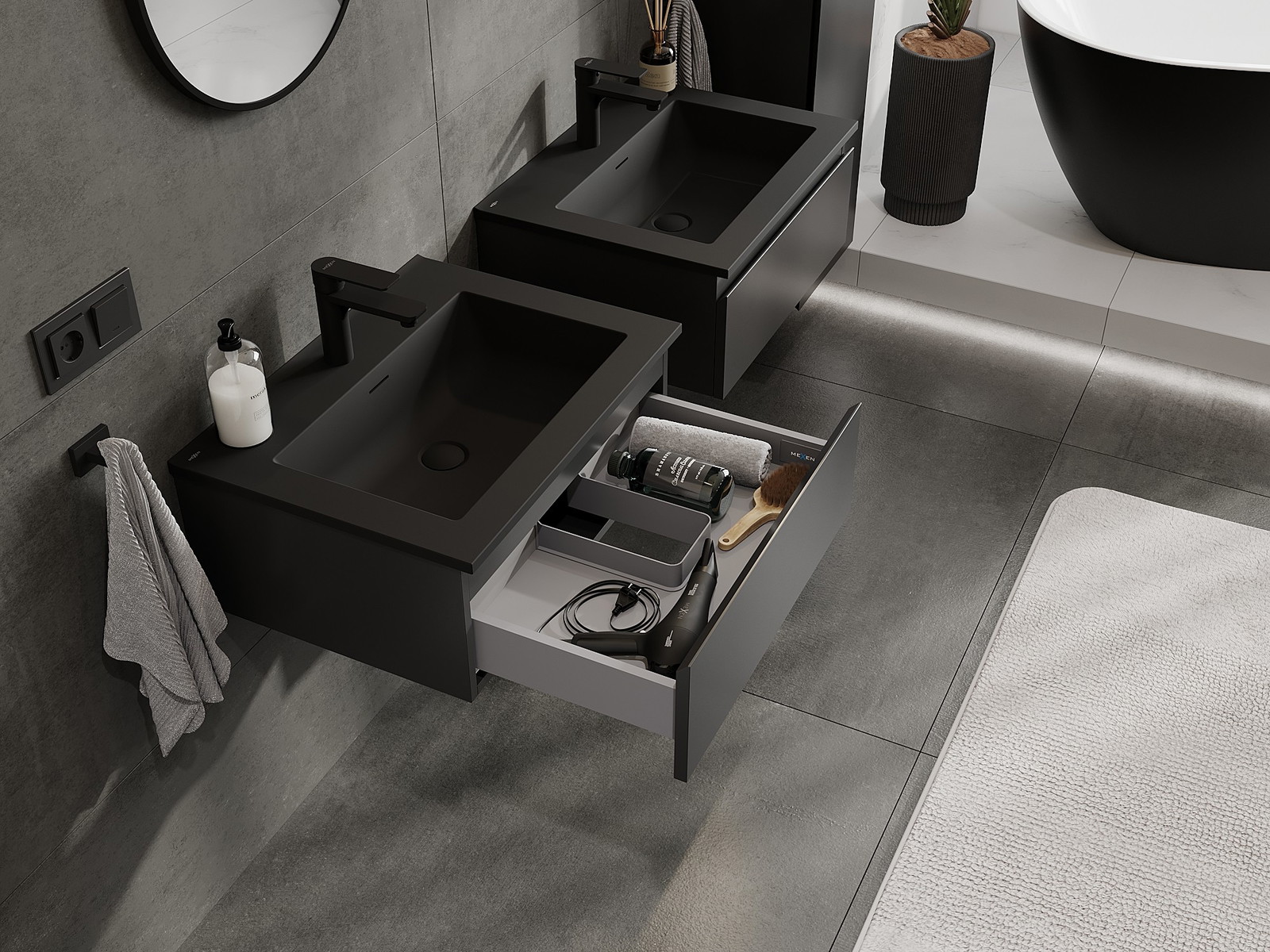 Mexen Orio шкаф за баня 60 см с мивка Otis, 1 чекмедже, черен мат - 91A10-06023-1-BF71-W18M71