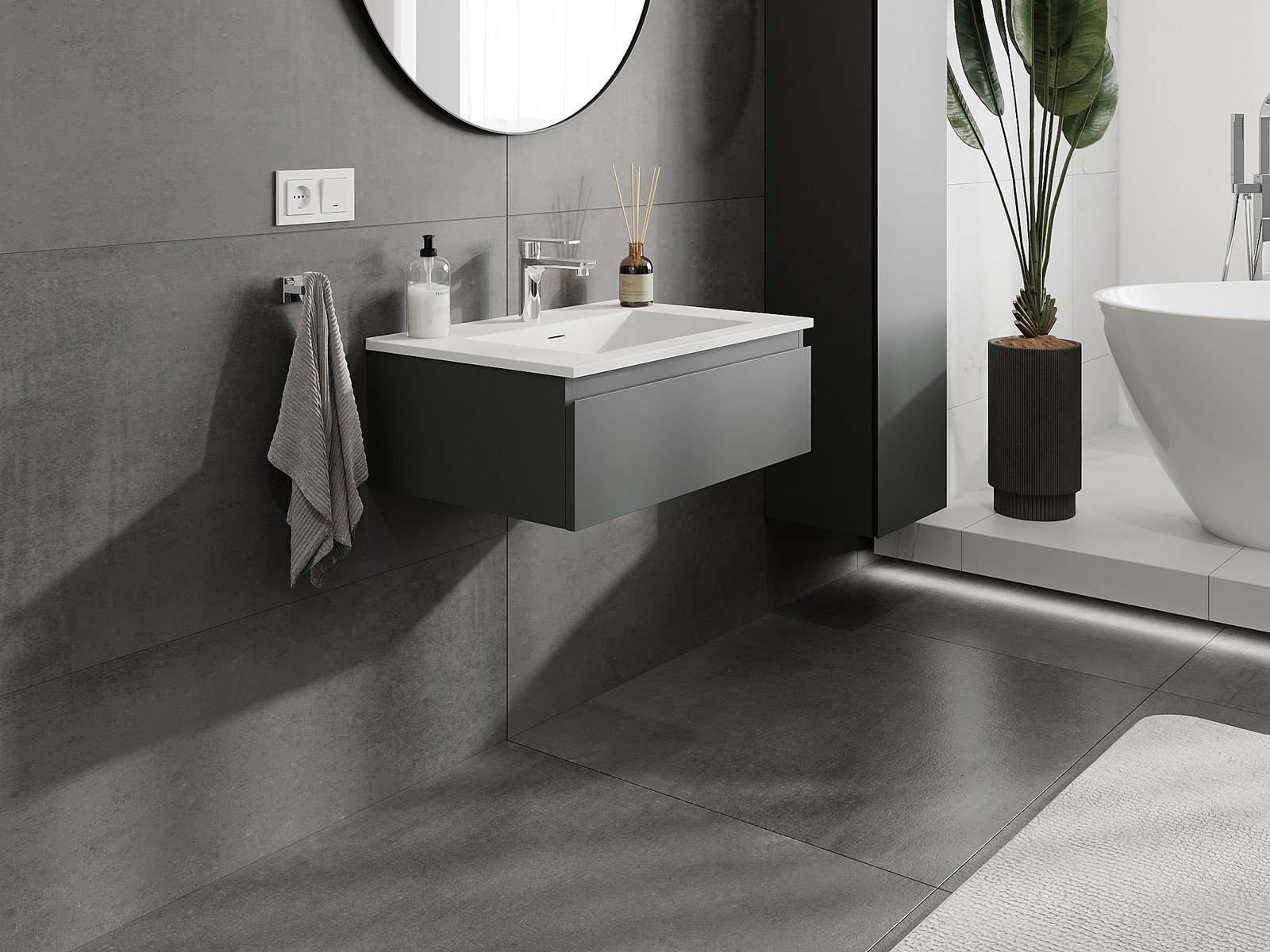 Корпусът на шкафа се доставя напълно сглобен, което означава максимално удобство и спестяване на време. Не е нужно да губите часове за сглобяване на мебела – просто го монтирайте на избраното място в банята. Това е идеалното решение за хора, които ценят бързия монтаж и незабавния ефект.