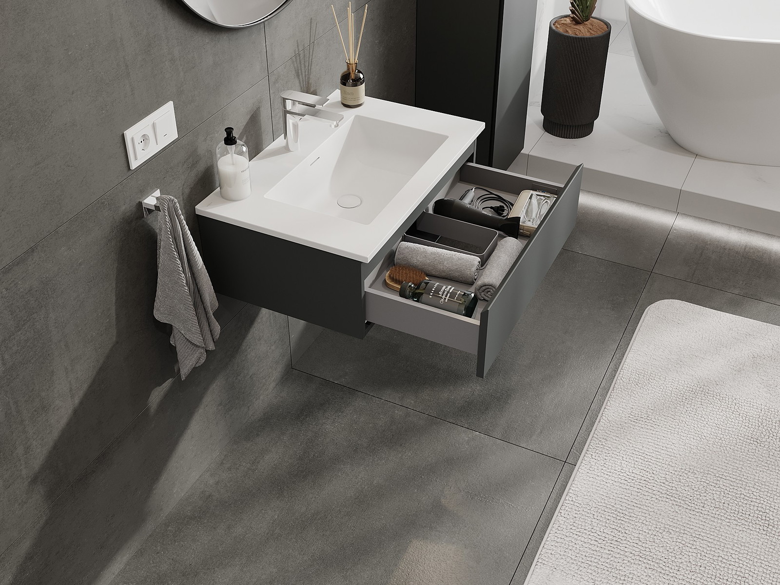 Mexen Orio шкаф за баня 70 см с мивка Otis, 1 чекмедже, графит мат/бял мат - 91A10-07023-1-BF66-W18M01