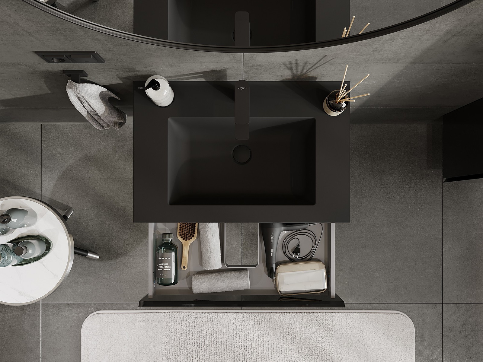 Mexen Orio шкафче за баня 70 см с мивка Otis, 1 чекмедже, черен гланц/черен мат