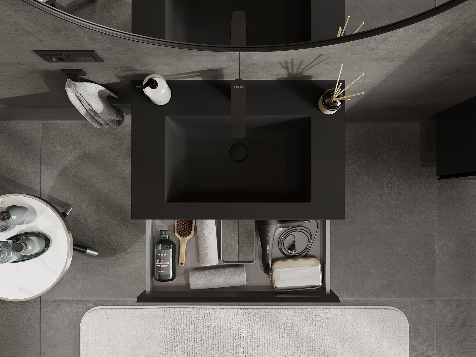 Mexen Orio шкаф за баня 70 см с мивка Otis, 1 чекмедже, черен мат - 91A10-07023-1-BF71-W18M71