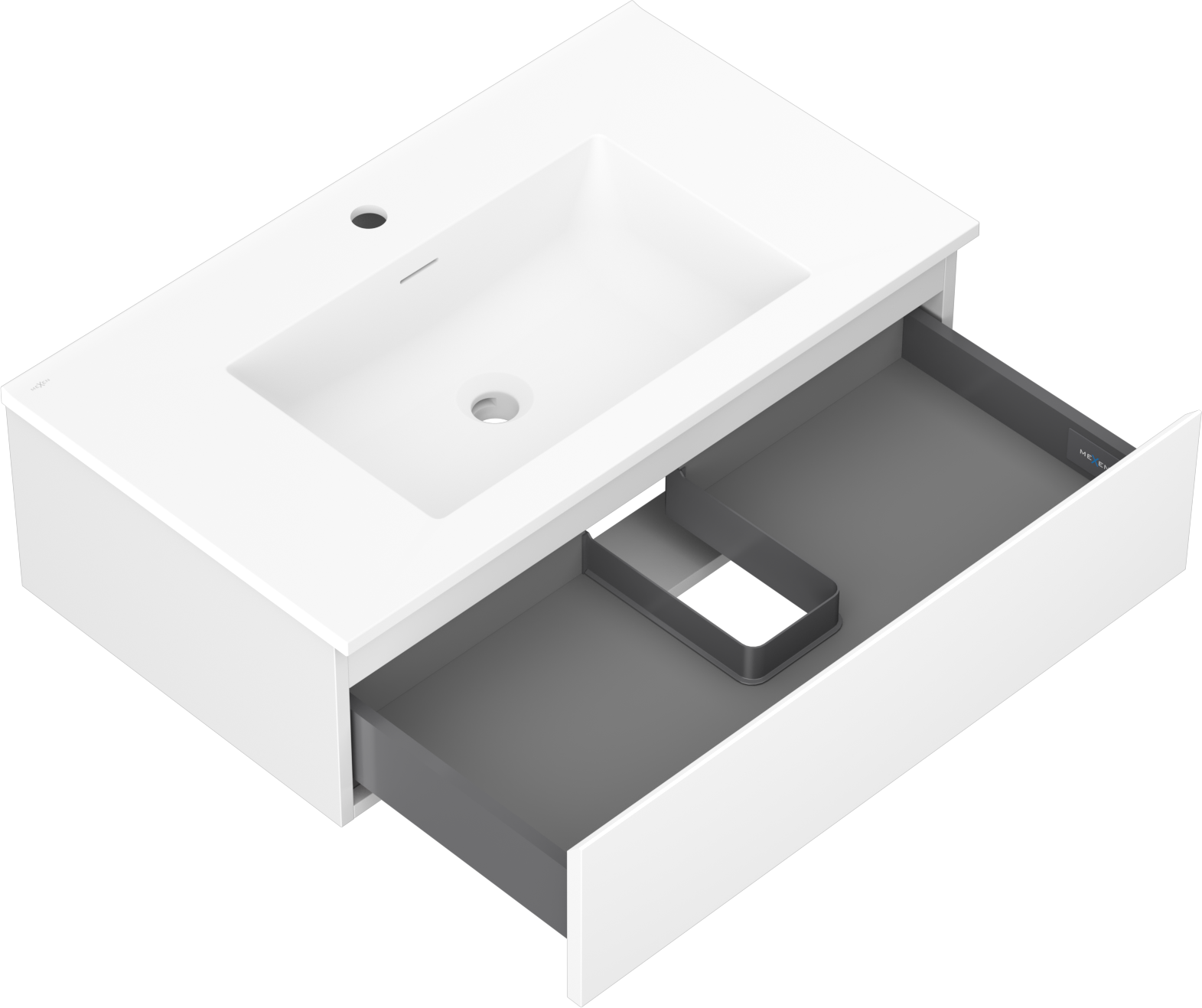 Изрезът в чекмеджето е проектиран по такъв начин, че да побере сифона, който е необходим в мивковите инсталации. Благодарение на това мебелът може да бъде монтиран напълно функционално, без да се налага отказване от пространството в чекмеджето заради инсталацията.