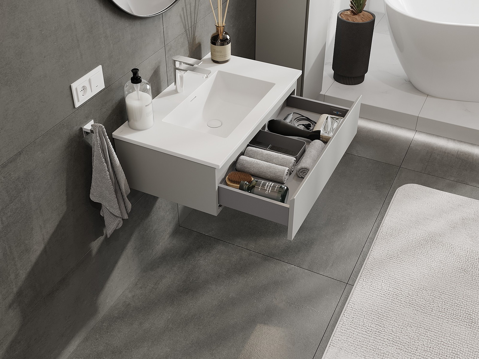 Mexen Orio шкаф за баня 80 см с мивка Otis, 1 чекмедже, сив мат/бял мат - 91A10-08023-1-BF62-W18M01