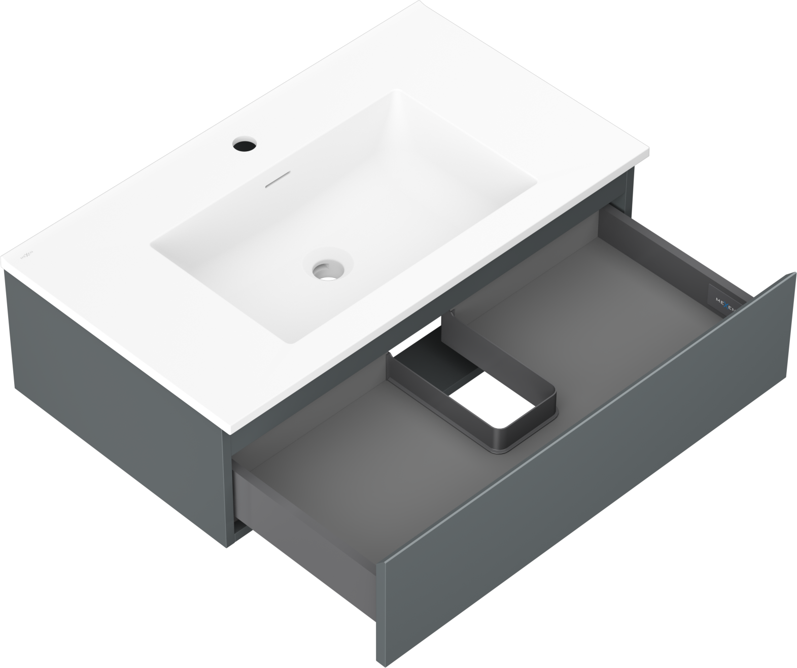 Изрезът в чекмеджето е проектиран по такъв начин, че да побере сифона, който е необходим в мивковите инсталации. Благодарение на това мебелът може да бъде монтиран напълно функционално, без да се налага отказване от пространството в чекмеджето заради инсталацията.