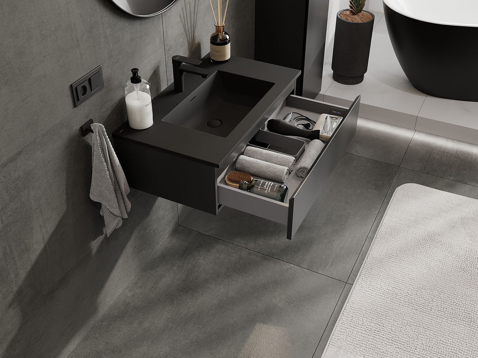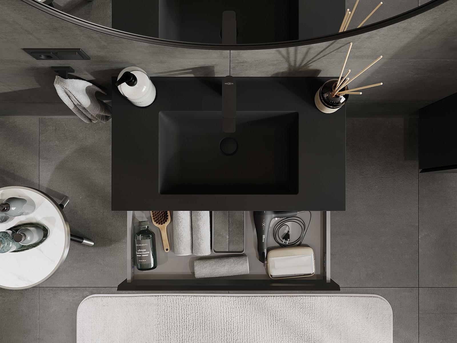 Mexen Orio шкаф за баня 80 см с мивка Otis, 1 чекмедже, черен мат - 91A10-08023-1-BF71-W18M71
