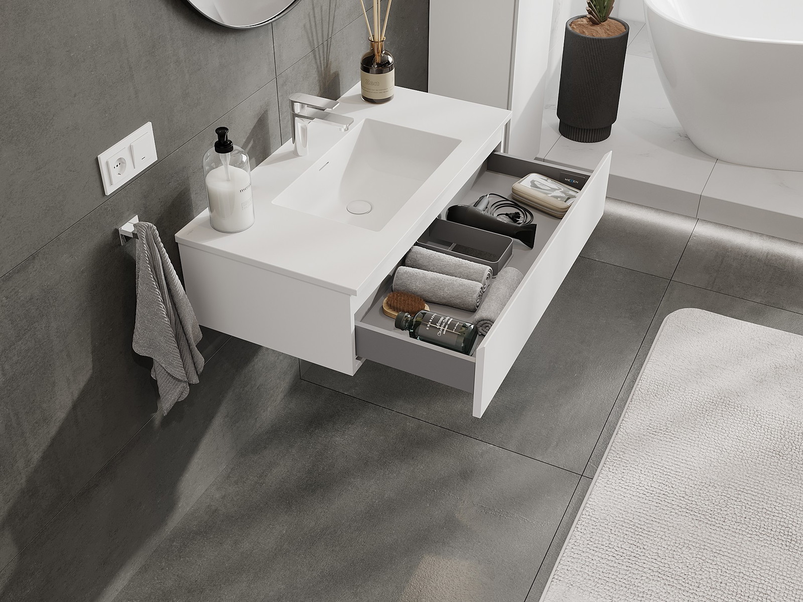 Mexen Orio шкаф за баня 90 см с мивка Otis, 1 чекмедже, бял мат - 91A10-09023-1-BF01-W18M01