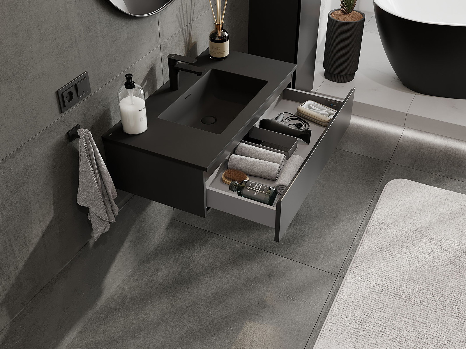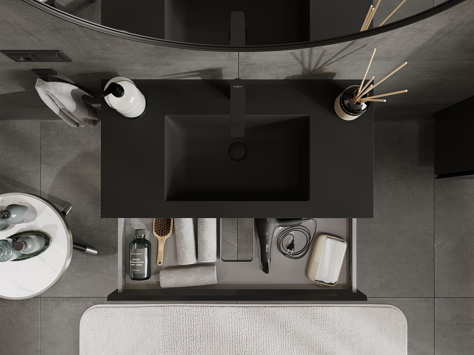 Mexen Orio шкаф за баня 90 см с мивка Otis, 1 чекмедже, черен мат - 91A10-09023-1-BF71-W18M71
