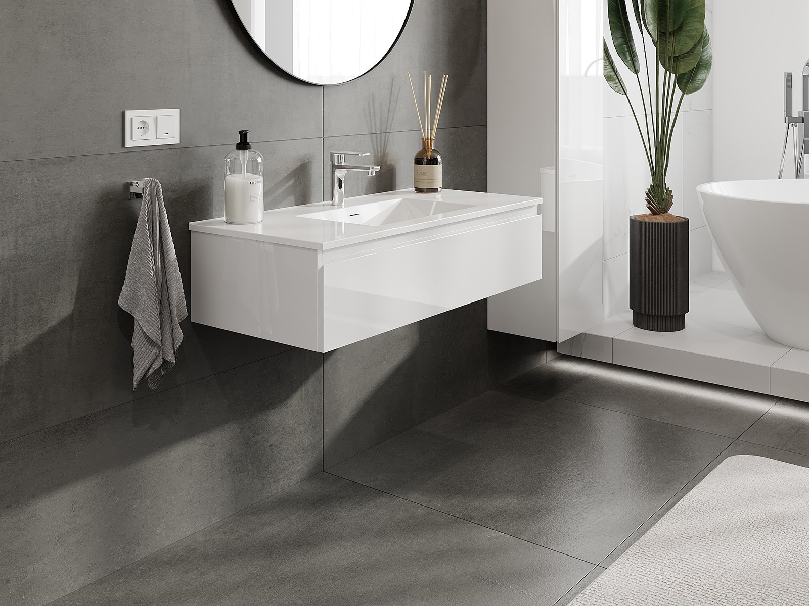 Корпусът на шкафа се доставя напълно сглобен, което означава максимално удобство и спестяване на време. Не е нужно да губите часове за сглобяване на мебела – просто го монтирайте на избраното място в банята. Това е идеалното решение за хора, които ценят бързия монтаж и незабавния ефект.