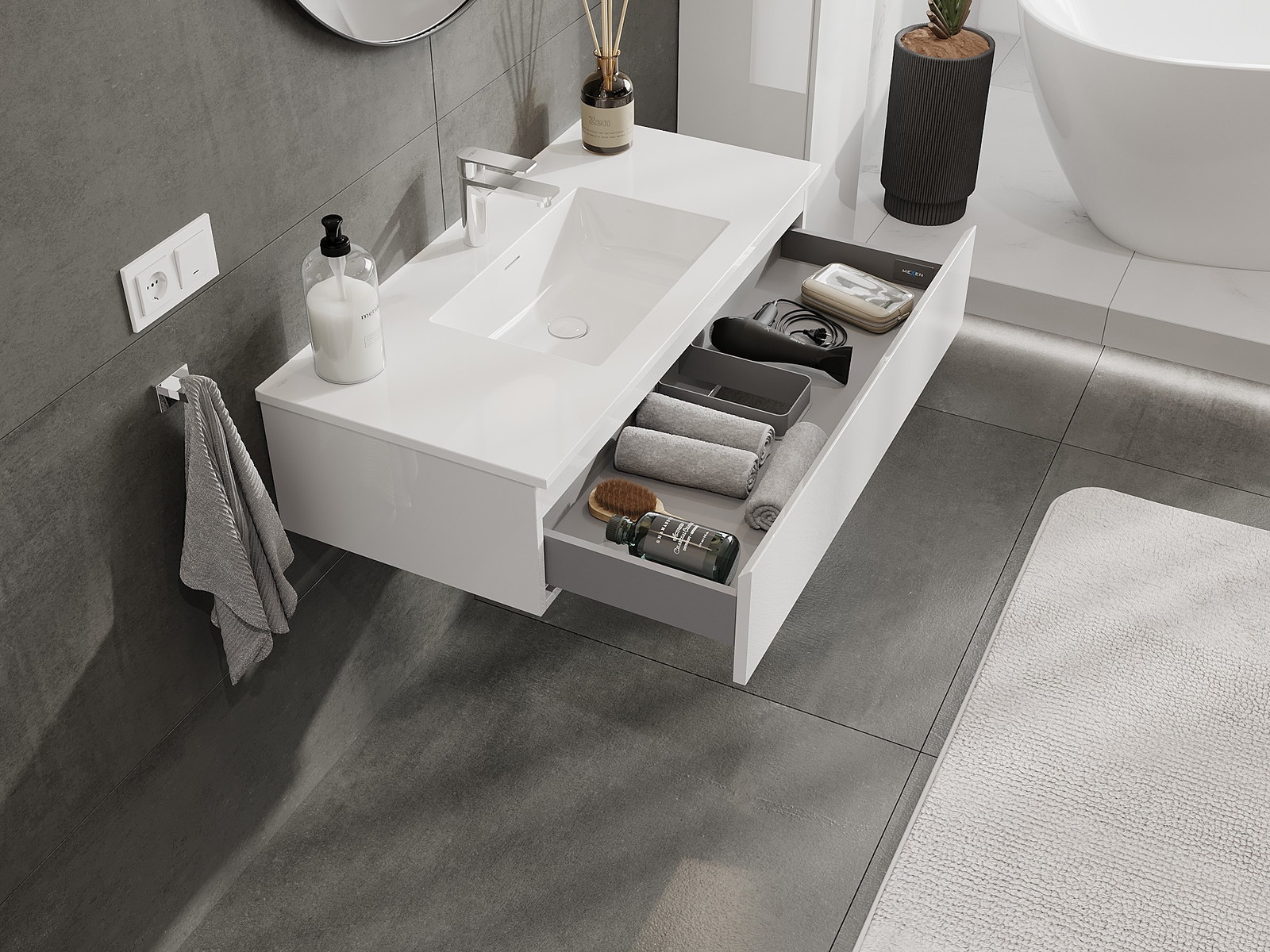 Mexen Orio шкаф за баня 100 см с мивка Otis, 1 чекмедже, бял гланц - 91A10-10023-1-BF00-W18M00