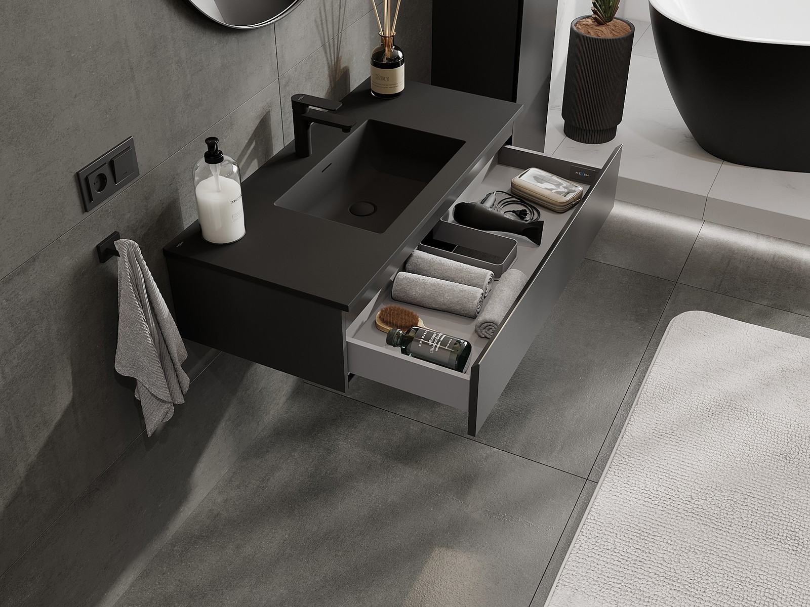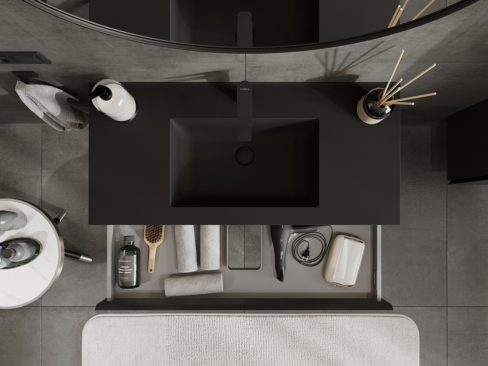 Mexen Orio шкаф за баня 100 см с умивалник Otis, 1 чекмедже, черен мат