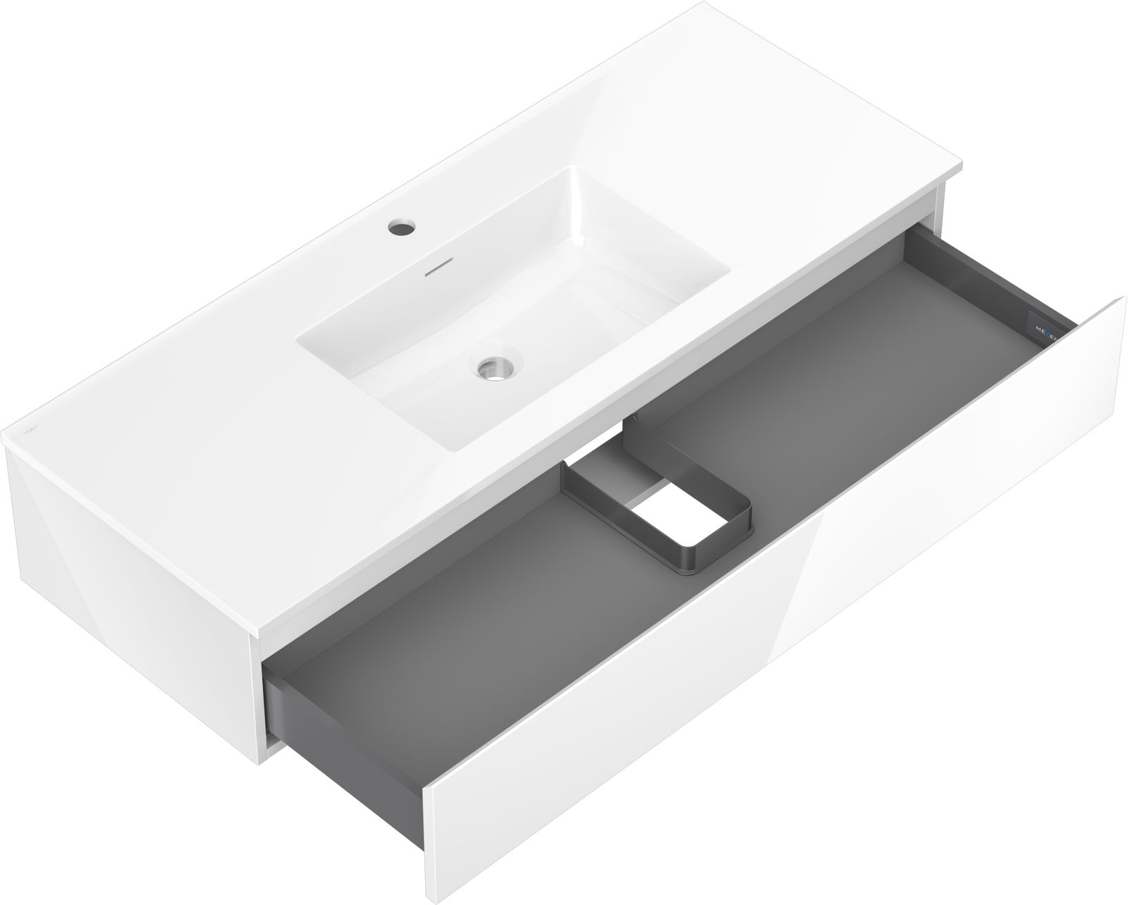 Изрезът в чекмеджето е проектиран по такъв начин, че да побере сифона, който е необходим в мивковите инсталации. Благодарение на това мебелът може да бъде монтиран напълно функционално, без да се налага отказване от пространството в чекмеджето заради инсталацията.