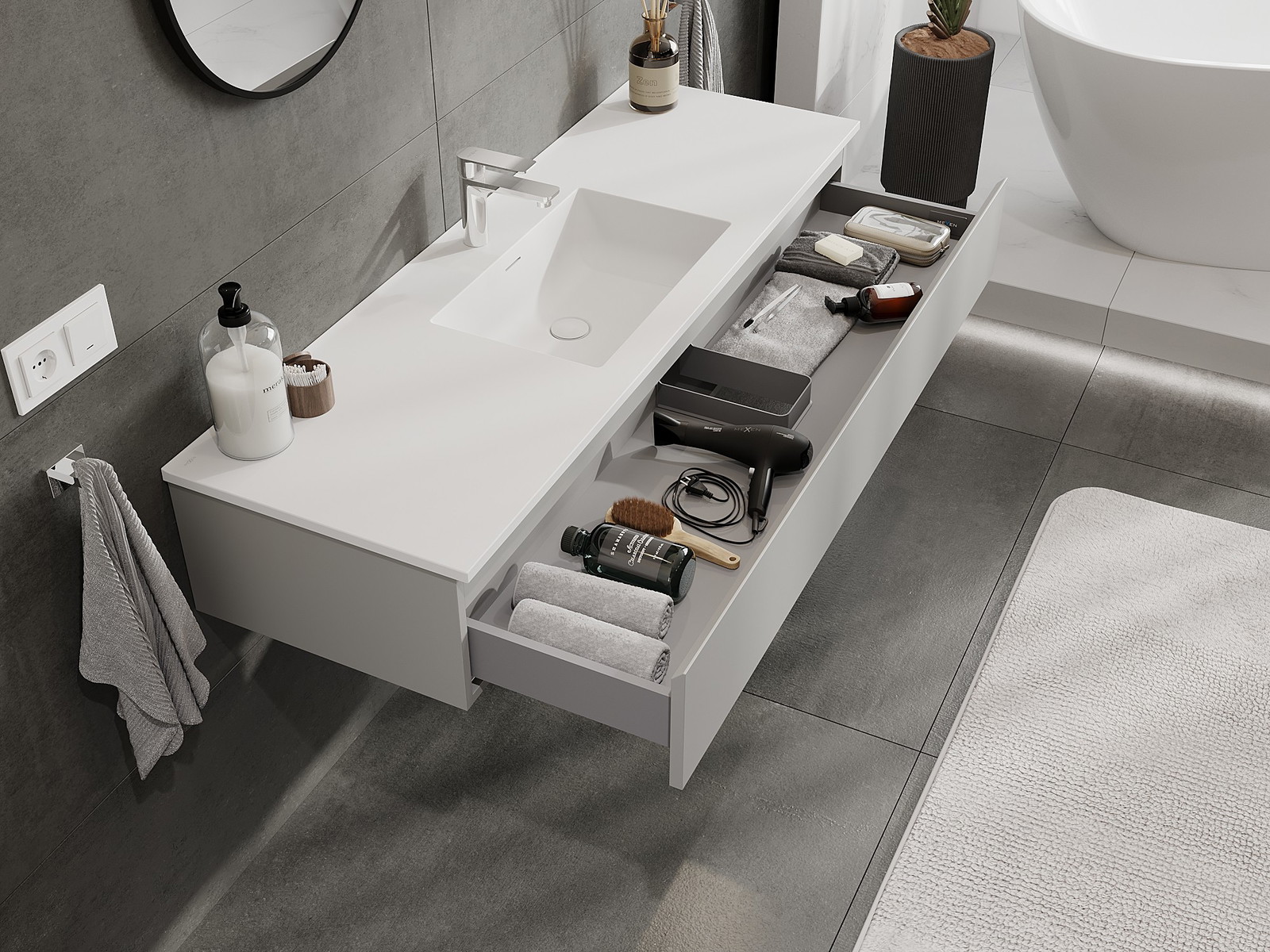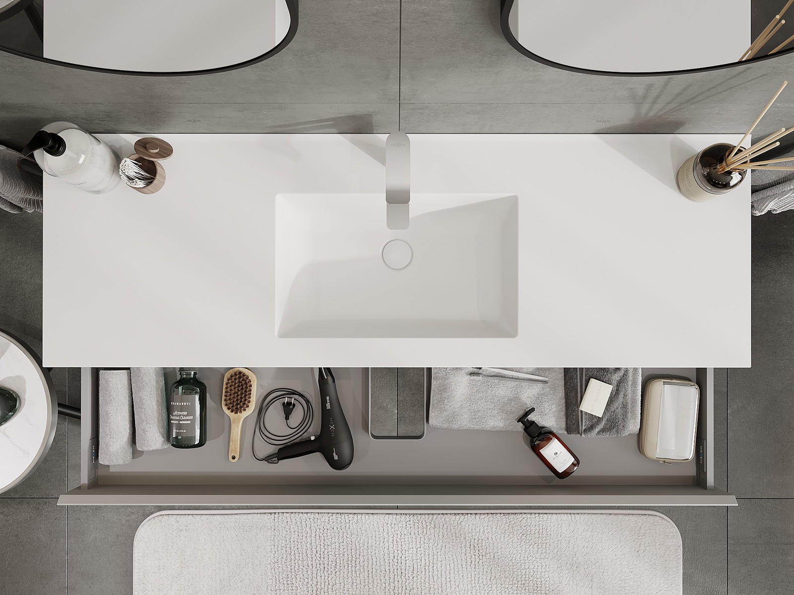 Mexen Orio шкаф за баня 140 см с мивка Otis, 1 чекмедже, сив мат/бял мат - 91A10-14023-1-BF62-W18M01