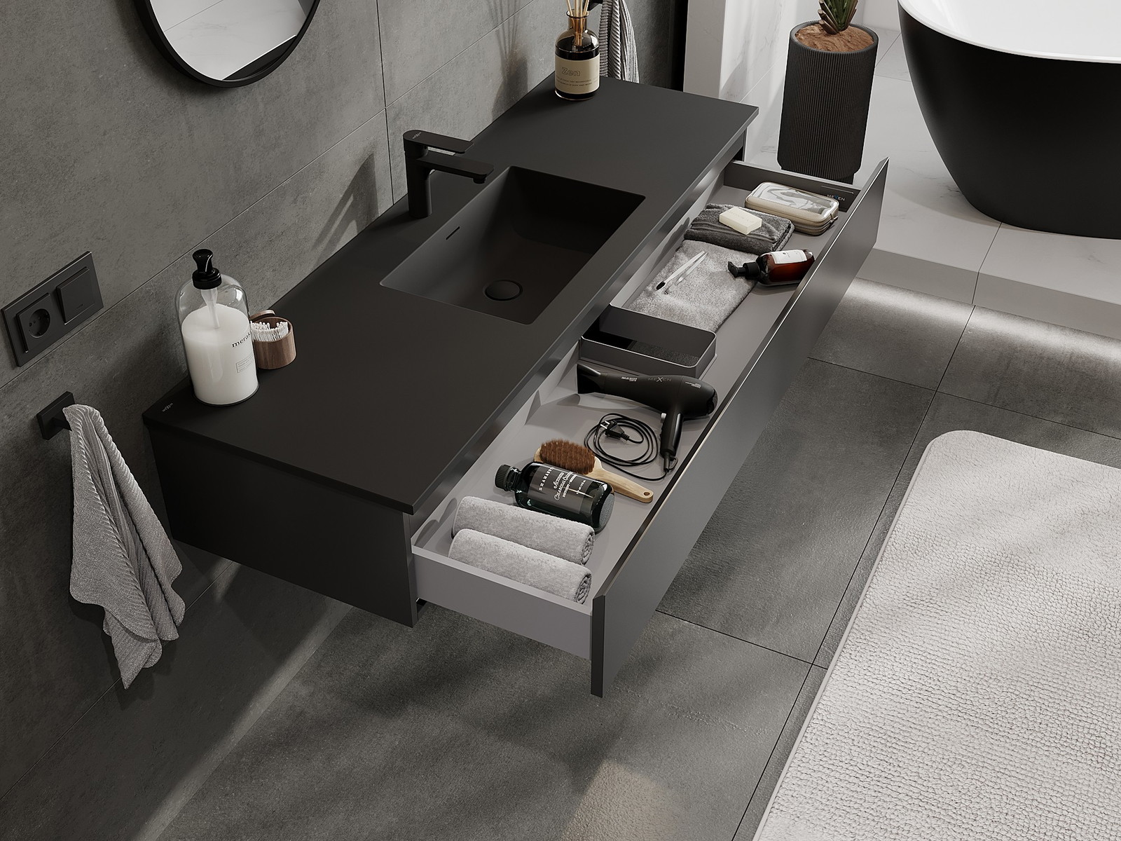 Mexen Orio шкаф за баня 140 см с мивка Otis, 1 чекмедже, черен мат - 91A10-14023-1-BF71-W18M71