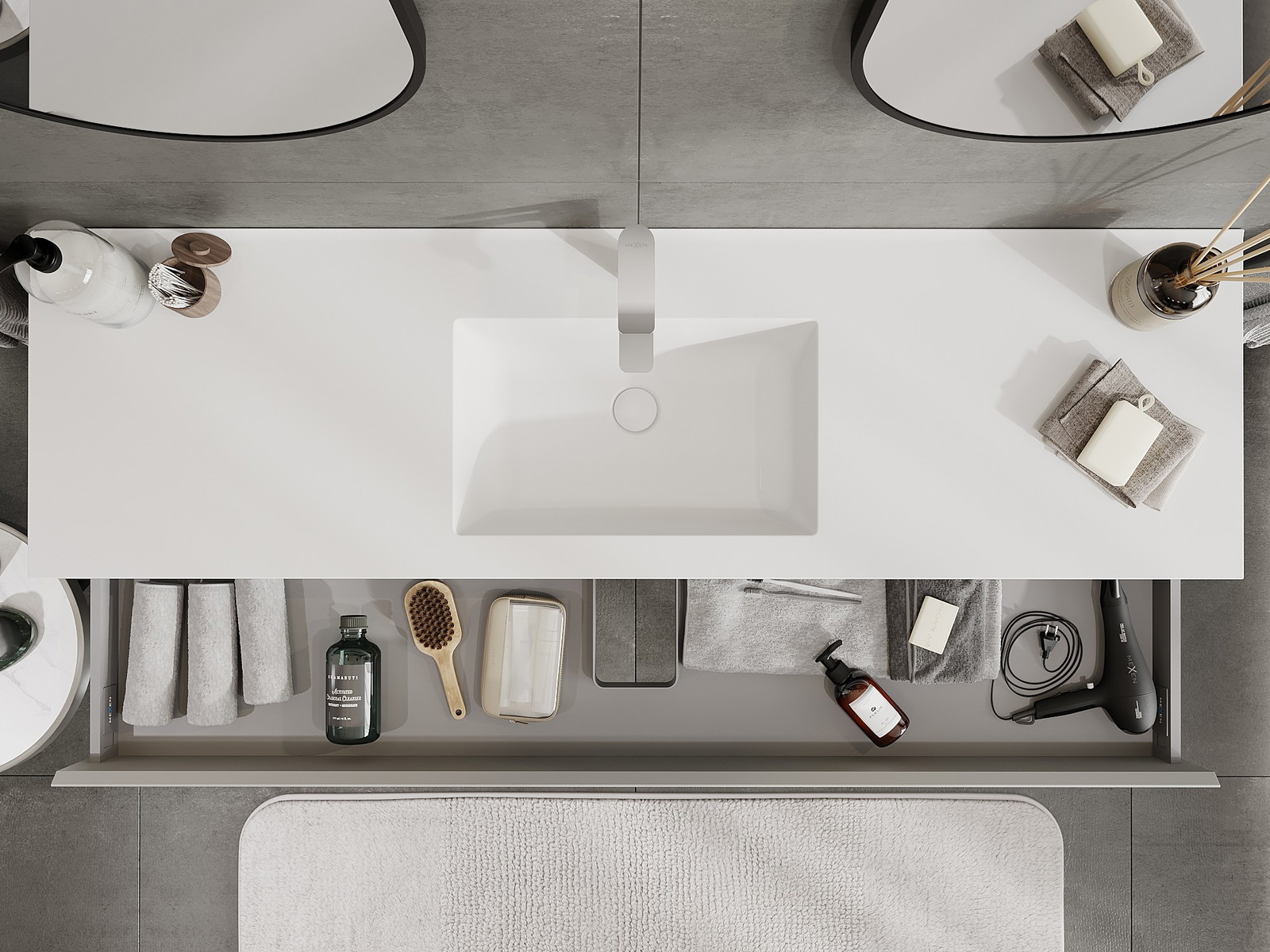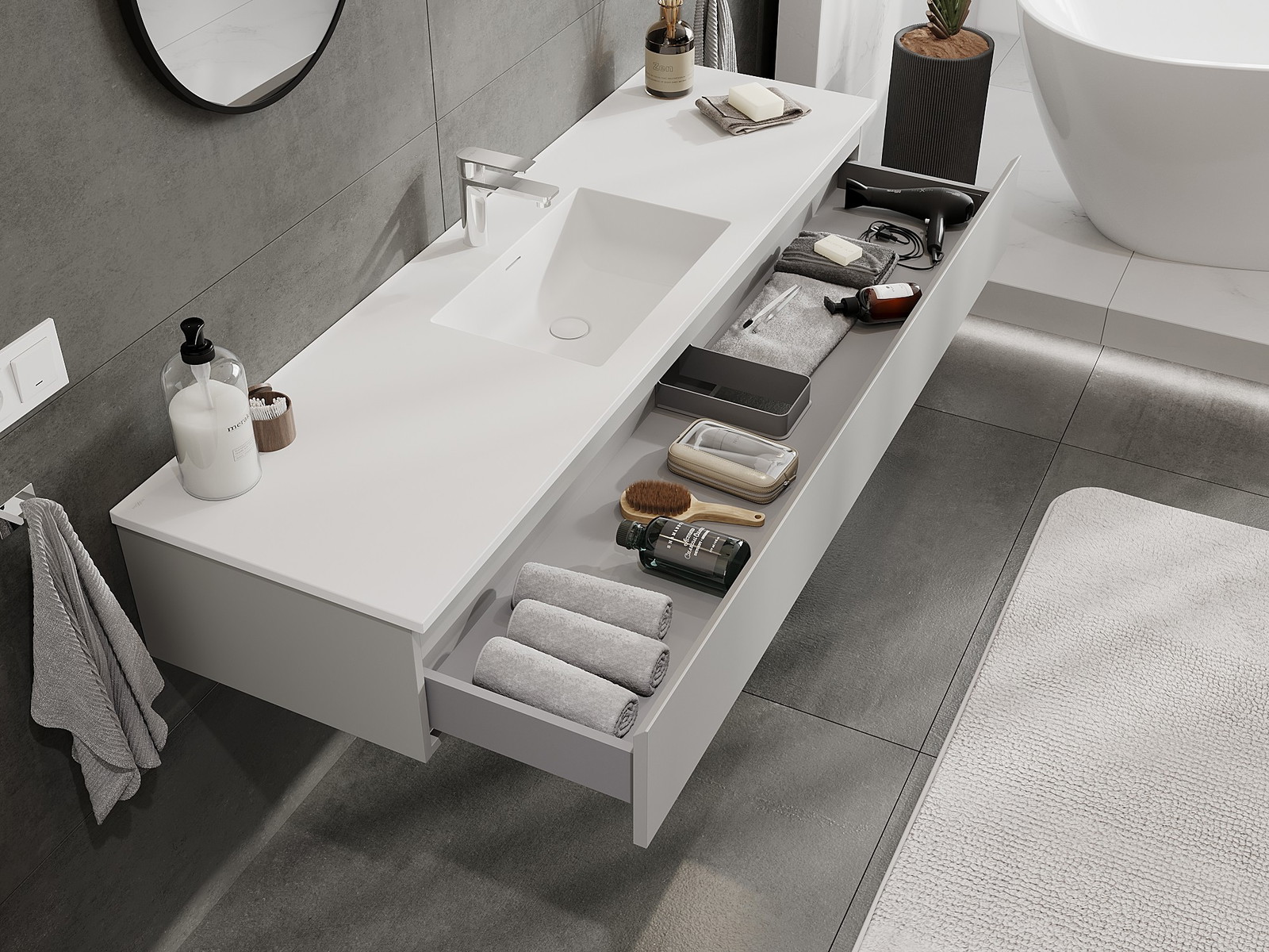 Нашите модулни мебели за баня могат да се комбинират в различни цветови конфигурации, което позволява пълна персонализация. Може да се избере както външният вид, така и функциите на отделните елементи, което позволява съчетаване на мебелите със собствените стилови и функционални предпочитания.